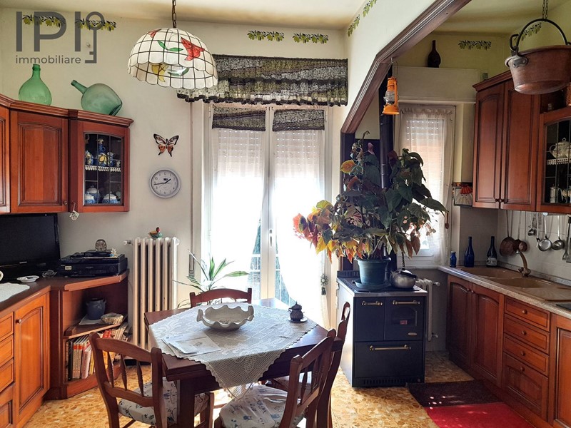 1) casa abitativa con a piano seminterrato due grandi locali utilizzati a garage per un complesso di circa 150 mq. Al piano terra abitativo suddiviso in due unità : la prima è un trilocale con cucinetta, tinello, camera e bagno. La seconda con cucina, due camere da letto sala e bagno. Finiture anni 70/80, pavimenti in piastrelle, serramenti in alluminio vetro semplice, riscaldamento collegato al piano superione con caldaia a legna/pellet.