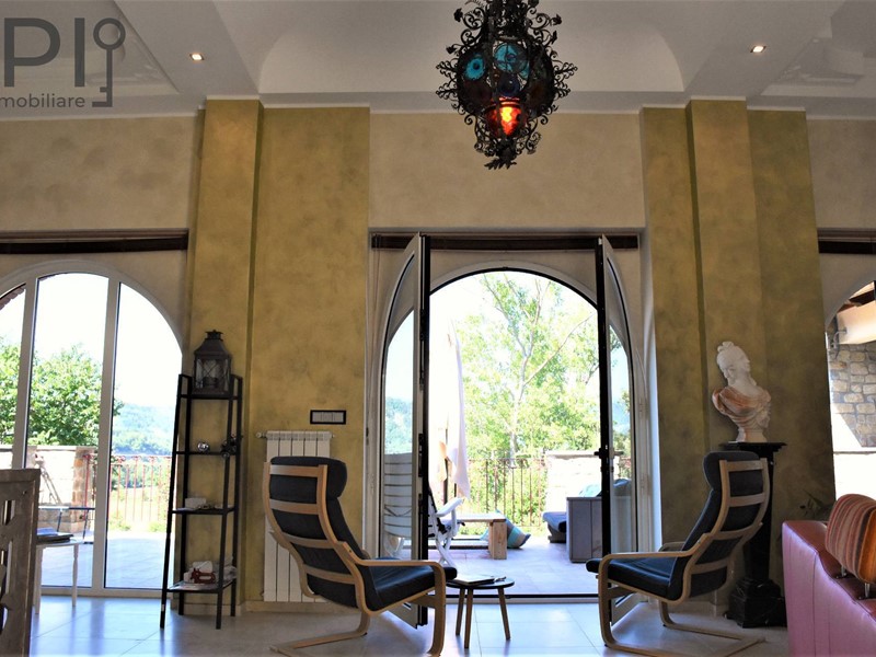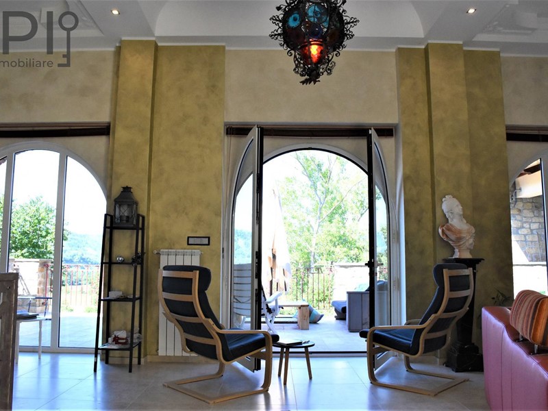 Dalla zona living e dalla cucina, così come dalla camera da letto accesso alla grande terrazza con vista sulla "Piana di Montaldo".