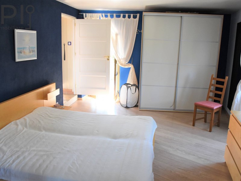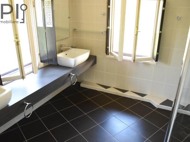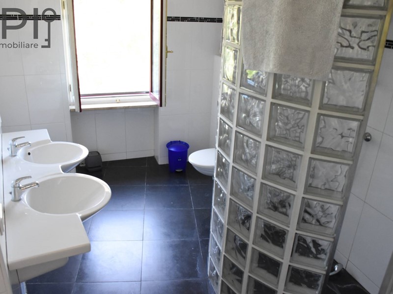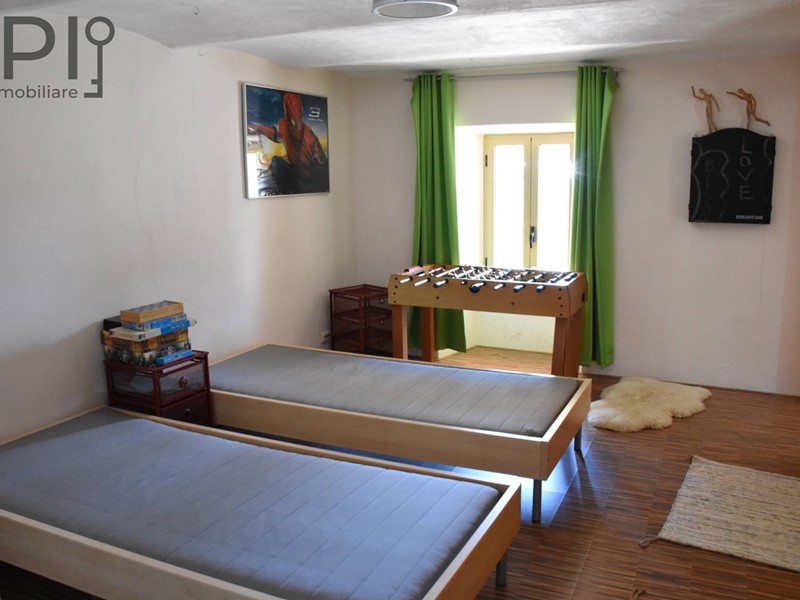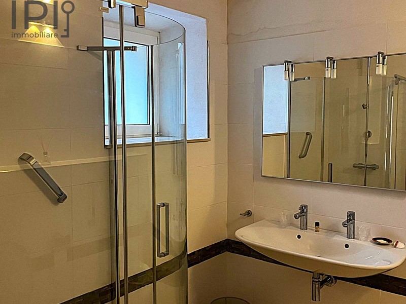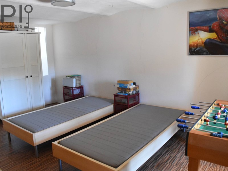 Finestre in alluminio doppio vetro, in parte in legno doppio vetro, porte laccate nuove, pavimenti in laminato ed in parte in graniglia, accesso al pianerottolo che porta alla parte sottostante ove si colloca un piccolo bagno di servizio. Al piano terreno, un ulteriore grande bagno con doccia e wc, una camera ludica con due letti ed ancora una camera molto grande a livello cortile.