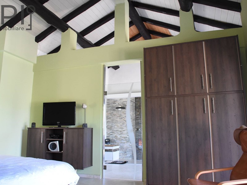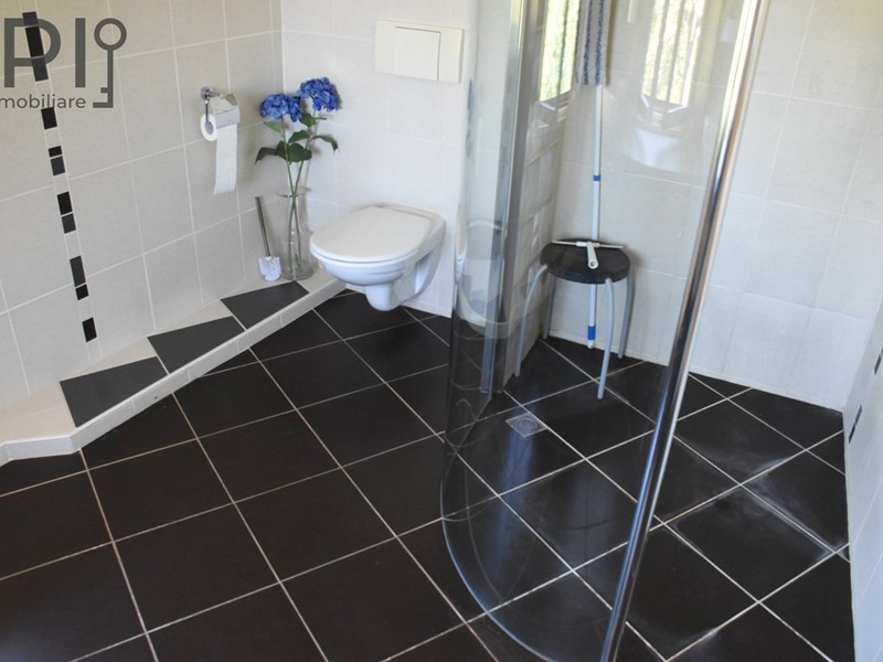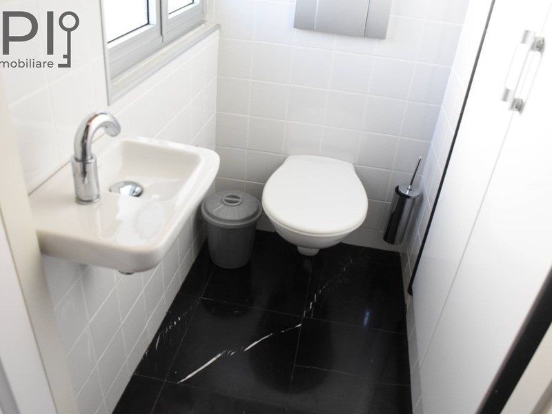 Accesso principale al piano terreno con ingresso con un bagno, grande camera da letto luminosissima per via delle due grandi vetrate con bagno privato con doccia e wc, al lato sinistro zona giorno con ulteriore bagno ed altra camera da letto.