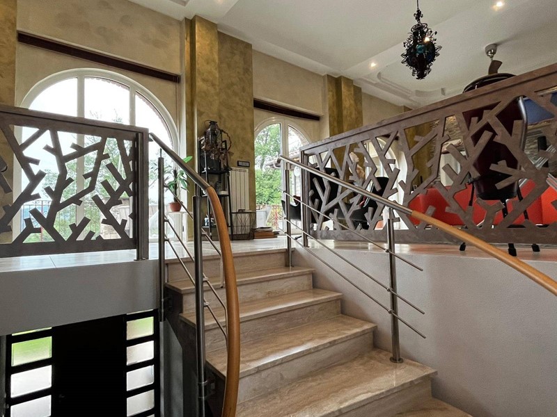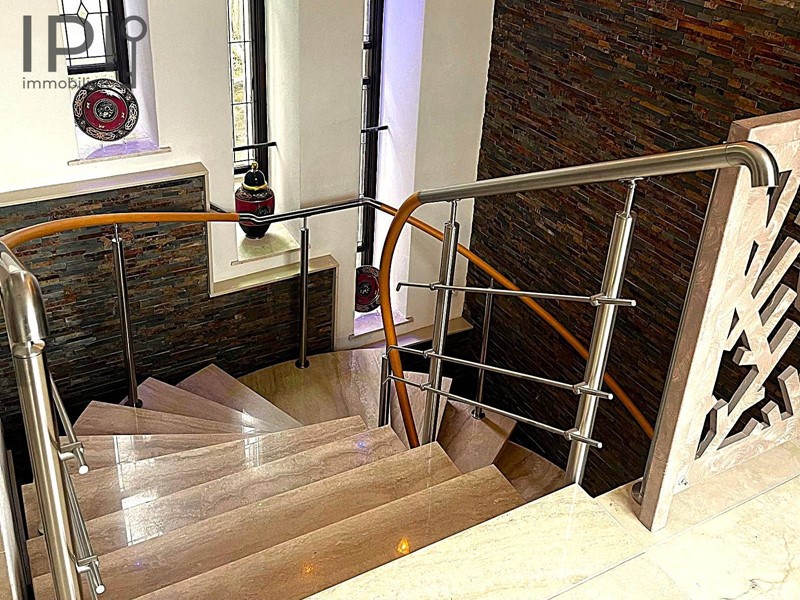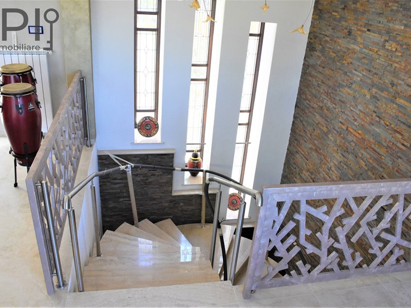 Tramite originale scala elicoidale accesso al piano primo dove troviamo un grande salone con soffitto adorno di pregevoli stucchi, grande cucina abitabile, enorme camera da letto con grandissimo bagno privato.