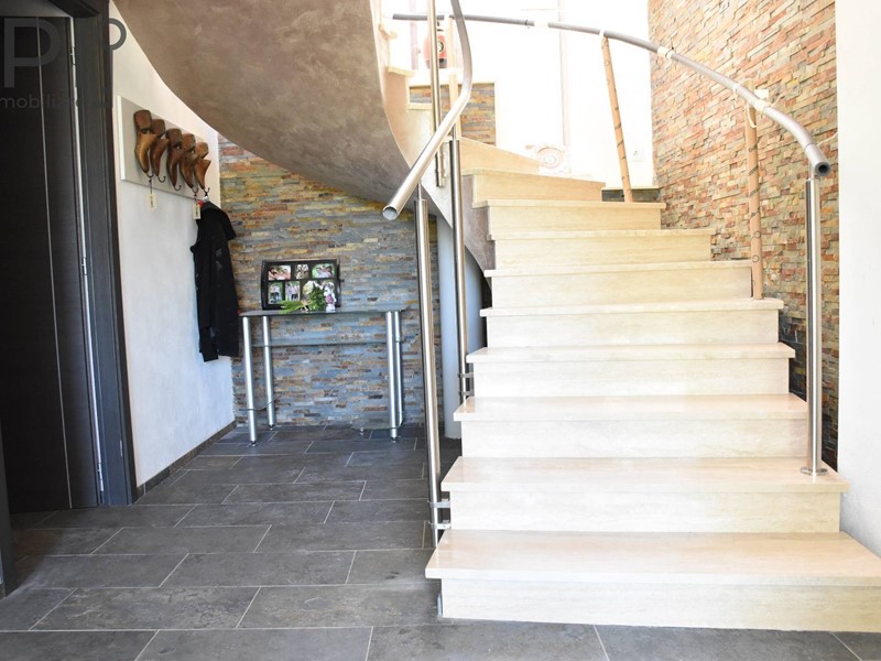 Tutto ottimamente rifinito, con laminato e muri con colori pastello. Impianto di riscaldamento con termosifoni a pianterreno (manca la caldaia). Impianto elettrico sottotraccia, tetto in ottime condizione, rifatto nuovo con travature in parte a vista.