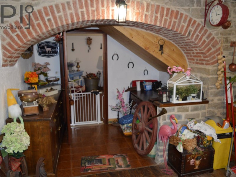 Langhe piemontesi, Prunetto paese collocato in posizione dominante sulla sommità di una collina langarola. La casa è inserita in un contesto di alcune abitazioni sparse, insiste su un grande cortile a prato di cieca 300 mq sulla quale si affaccia anche il fabbricato del vicino. La casa è completamente indipendente da 4 lati ed articolata su due piani,. A piano terra ingresso alla parte abitativa ed anche ingresso ad un grande locale censito come garage ma utilizzato come tavernetta con annessa cucinetta e bagno, nel locale sono stati portati a vista parzialmente i muri in pietra a vista molto belli ed è collocato uno spendido forno interno. Sempre a piano terra si transita in un locale disimpegno che funge da salotto e dal quale si esce esternamente su un terrazzo coperto molto grande e bello.