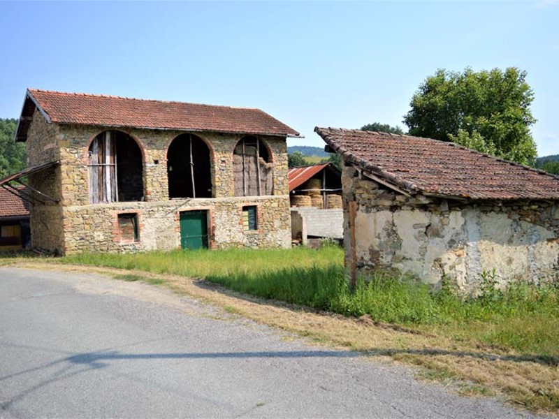 Prime colline alle spalle del mare, a 30 minuti dalle coste liguri, nella tranquillità della campagna, in ambito di frazione, proprietà abitativa composta da casa abitativa semindipendente, ma senza nessun tipo di servitù o comunione, e da fabbricati ex agricoli. La casa si articola su due piani fuori terra e da un sottotetto molto alto che potrebbe eventualmente venire recuperato a livello abitativo. Nella parte a terra c'è un bel cortiletto recintato dove trova dimora un fabbricato ex pollaio forno ancora originale in pietra. Sempre a piano terra una cantina con ingresso autonomo. Ancora, per la parte abitativa una cucinotta ed una sala. Si accede al piano superiore sia da scala interna sia da scala esterna che arriva su un bel terrazzo. Al piano primo, abbiamo corridoio, bagno, tre camere da letto e due terrazzi. Le finiture sono anni 80, la casa è perfettamente abitabile, con serramenti in legno a vetro semplice ma belli, pavimenti in graniglia, c'è acqua comunale e luce elettrica. Ben manutenuta è immediatamente abitabile anche se non utilizzata da tempo. La proprietà si completa ed estende poi al d ilà della strada comunale con un appezzamento di terreno bello e pianeggiante a prato sul quale insistono tre fabbricati. Il più grande è una bella ex stalla e fienile interamente costruita in pietra che si struttura su due piani di circa 80 mq a piano. A piano terra ex stalla e magazzino a piano primo ex fienile. Ancora davanti a questo fabbricato un bel porticato aperto più recente ed un ulteriore costruzione in pietra ad usi vari. Riscaldamento con stufa, tetto a posto condizioni generali soddisfacenti. Suscettibile di miglioramenti ed ampliamenti anche per l'eventuale trasformazione del fabbricato ex agricolo in abitativo.