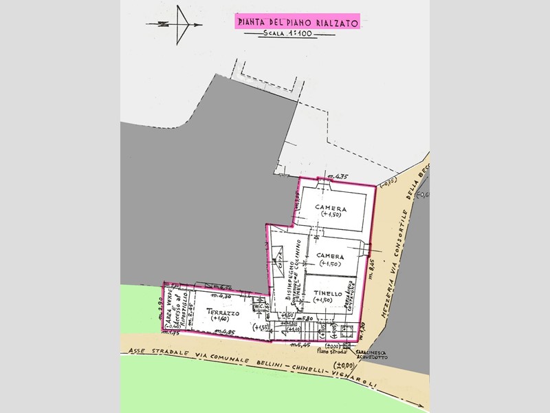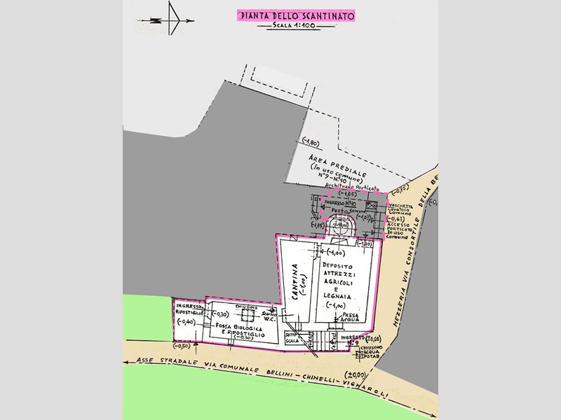 A piano terreno troviamo depositi e cantine, al piano superiore parte abitativa composta da ingresso su disimpegno, tinello e due camere, oltre a piccolo sgabuzzino. Da questo piano accesso ad una bella terrazza. La casa è in pietra originale, con bei pavimenti in cementine e particolari originali molto belli, ma per essere abitata necessiterebbe una ristrutturazione, in primis la creazione di un bagno che al momento non è presente. Compresi nella proprietà 38.440 Mq. di terreno in parte a cortile intorno a casa, in parte suddiviso in piccoli appezzamenti. L'immobiole è dotato di corrente elettrica e servita da acquedotto comunale. Ideale per una bella ristrutturazione di qualità, valida sia come prima che come seconda casa.
