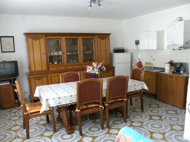 Casa in ambito di frazione, semindipendente su due livelli piano seminterrato con cantina trasformata in camera da letto, gabinetto, garage. Scala a chiocciola che porta al piano terra con sala con zona cucina, 1 camera da letto un bagno. La casa è attaccata a lato con altra, cortile d'accesso lastricato in comunione con vicino. Pavimenti ceramica, e legno, finestre in alluminio doppio vetro riscaldamento a termoconvettori a gas, fognatura comunale, acqua, luce. Struttura a posto senza lavori. Terreno mq 400 a 50 metri da casa printa subito e perfettamente abitabile. Ideale come seconda casa.