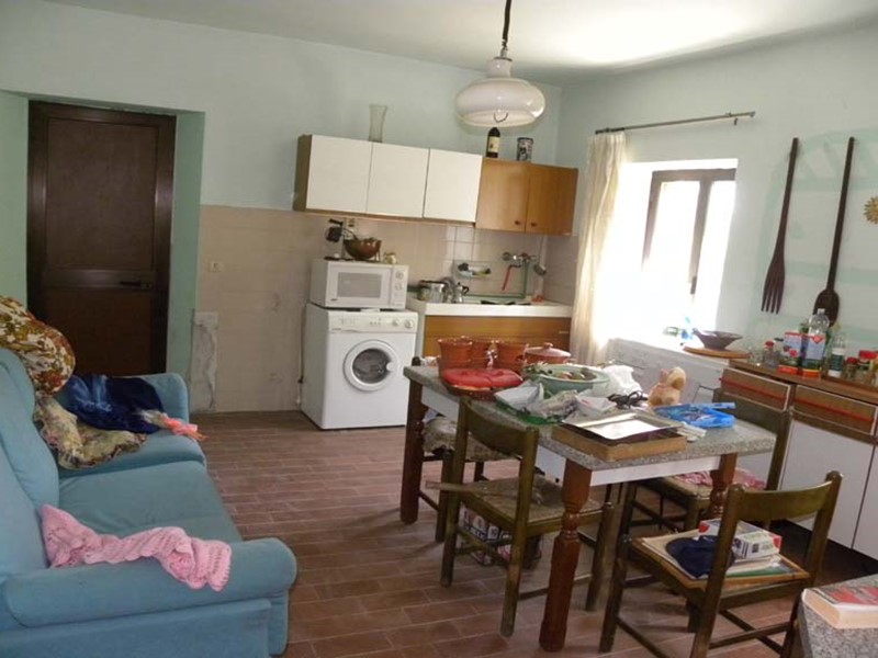La casa da direttamente sulla stradina e si sviluppa su 2 livelli con a piano strada 3 camere da letto e bagno di buone dimensioni con vasca. Scala di accesso interna al piano seminterrato composto da soggiorno con angolo cottura ampio e camera da letto (che potrebbe divenire sala), locale caldaia con doppio accesso sia interno che esterno.
