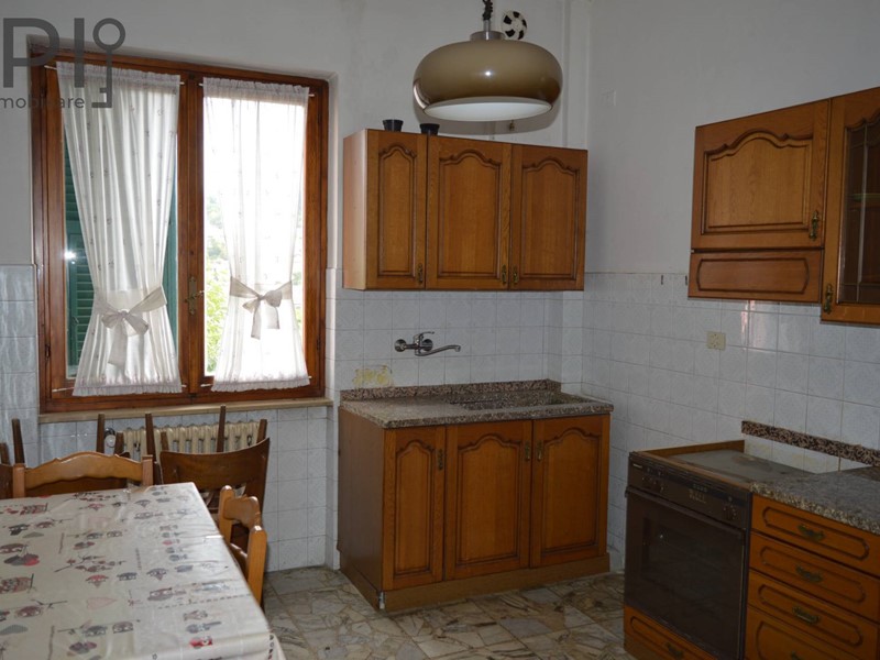 Appartamento al primo piano con entrata su corridoio, cucina, camera, bagno con doccia, finiture anni 80, da riordinare.