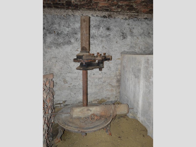 Al piano seminterrato Stalle, cantine, magazzini, e vani di sgombero, i soffitti sono tutti a voltini in tradizionali mattoni pieni variamente lavorati, è presente ancora la struttura di un vecchio torchio.