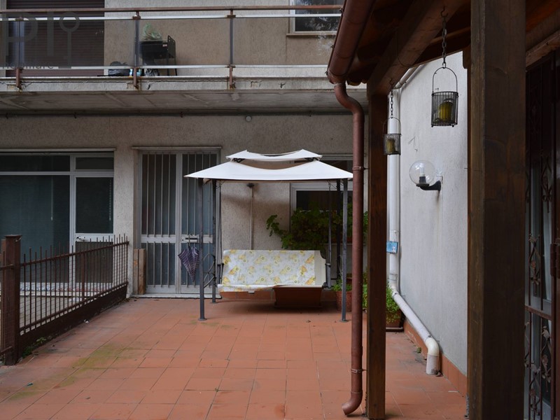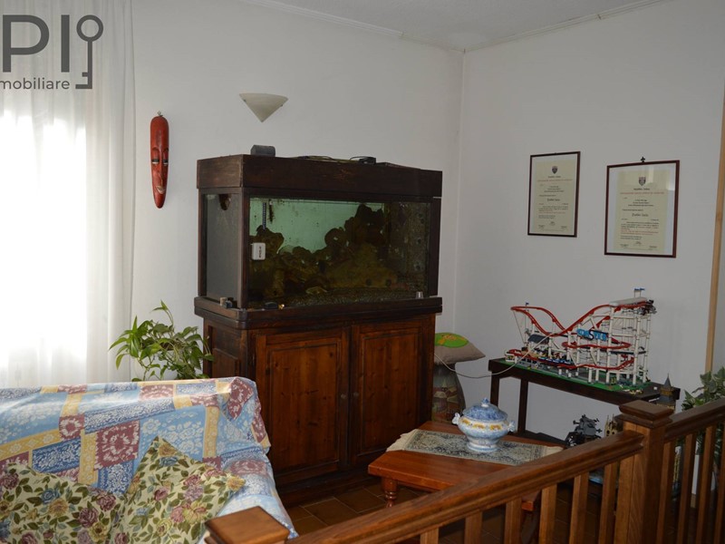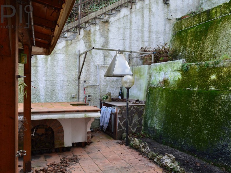 Ingresso da piano rialzato con accesso sul salone doppio con affaccio sulla cucina abitabile. Dal salone si puo' arrivare alla grande terrazza piastrellata, mentre dalla cucina si giunge al giardino, con fasce di terreno, e dehor attrezzato con forno-barbecue.