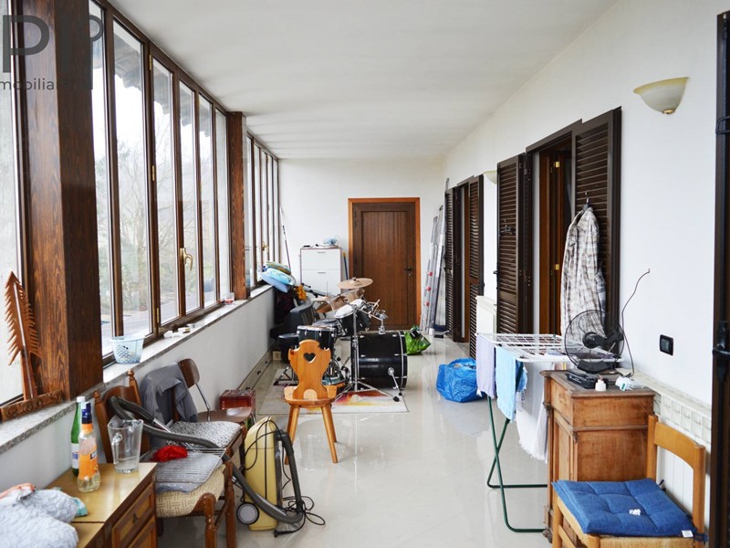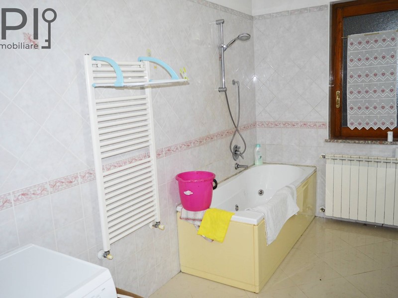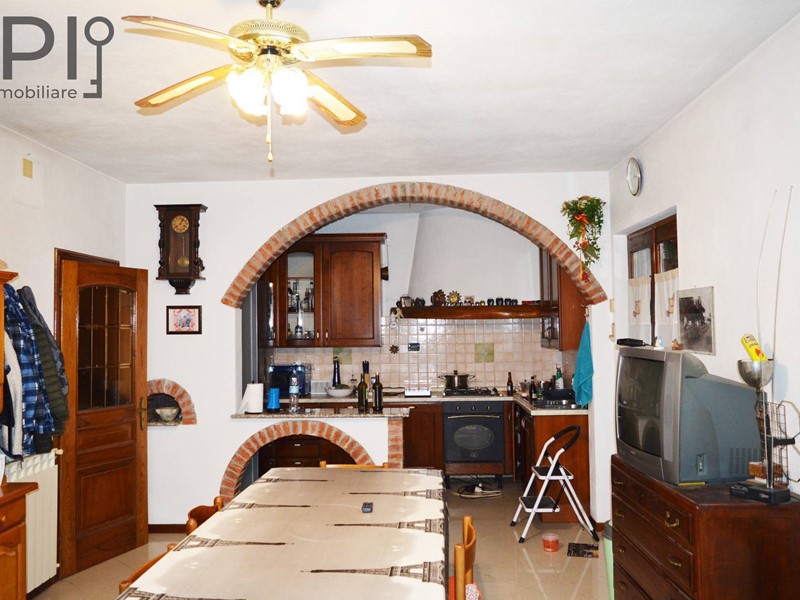 Una scala in marmo coduce all'appartamento del piano primo composto da ingresso, cucina-sala enorme con stufa a legna, forno e accesso alla veranda, che percorre tutta la facciata dell'abitativo, 3 camere da letto e bagno di generose dimensioni con vasca, ancora dispensa e accesso al fienile. Belle finiture con infissi in legno doppio vetro, riscaldamento con caldaia a legna, marmo per i pavimenti, la cucina e il bagno. Al piano superiore troviamo un ulteriore appartamento mansardato, composto da un monolocale attrezzato con camera e cucina e un bagno con doccia. Allo stesso piano parte ancora al grezzo che potrebbe essere utilizzata per creare una ulteriore unità abitativa o per ingrandire la prima. Tutto perfettamente abitabile, solo da riordinare.