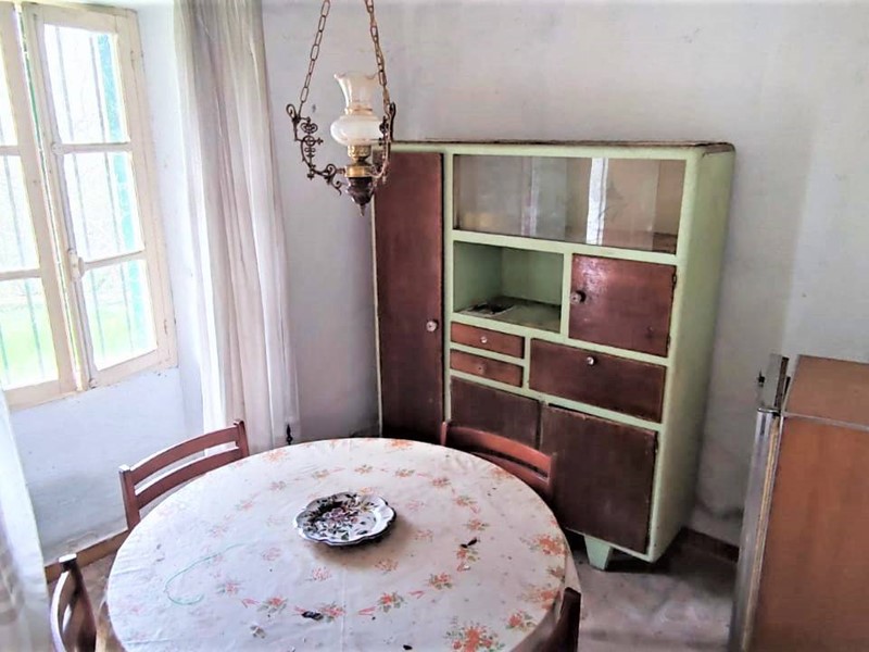 Le condizioni generali del fabbricato sono discrete e le finiture interne anni 70. Pavimenti in piastrelle e graniglia, i serramenti in legno a vetro singolo, il riscaldamento tramite stufa. Allacciamento all'acquedotto comunale ed all'energia elettrica, scarichi in pozzo nero. La proprietà è interamente recintata, ma il vicino ha un diritto di passaggio a margine del terreno per raggiungere un terreno posto sul retro della casa. Il passaggio è consentito per la cura del terreno stesso. La casa è abitabile da subito, senza troppe pretese e può ovviamente essere migliorata per elevarne la qualità ed il tono. Il prezzo è assolutamente interessante in relazione al fabbricato ed alla sua collocazione.