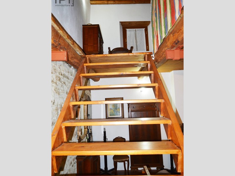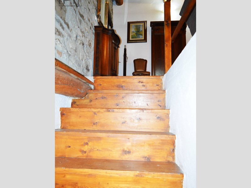 Soffitti e scala in legno con particolari in pietra molto belli.
