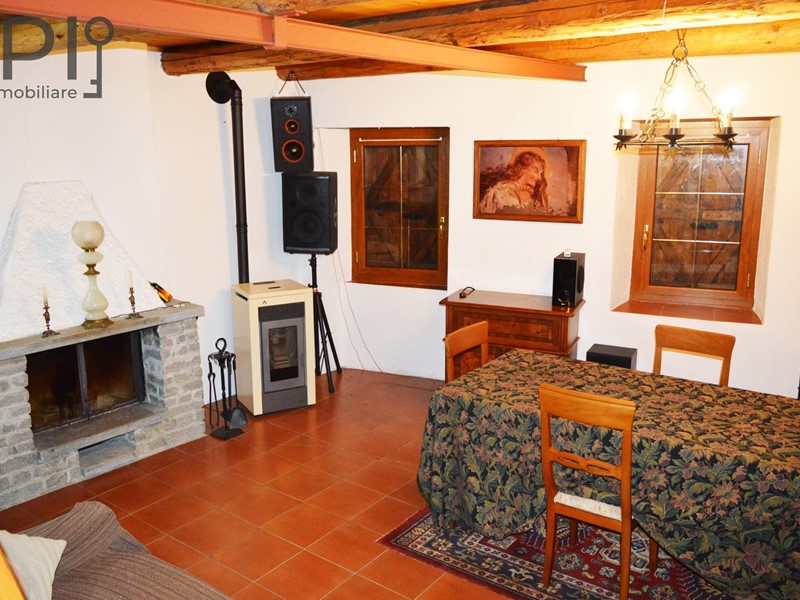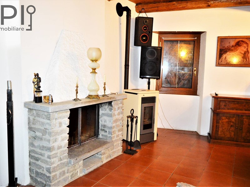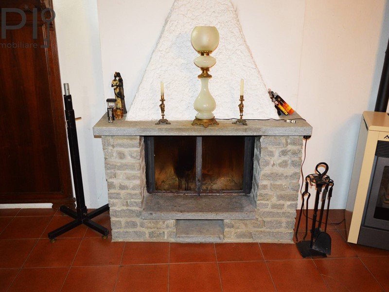 Salendo al piano primo troviamo un salone con camino e stufa a pellet.