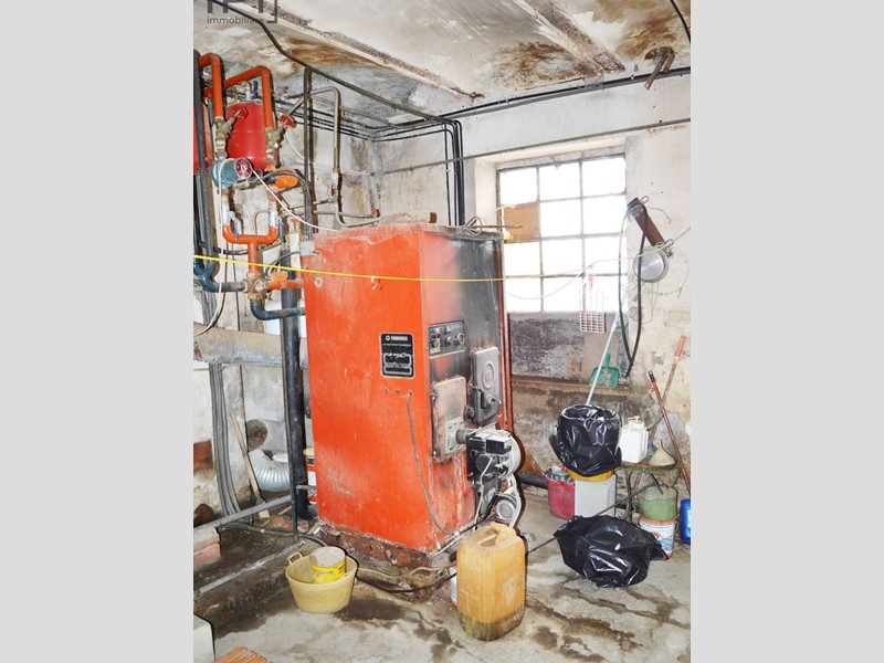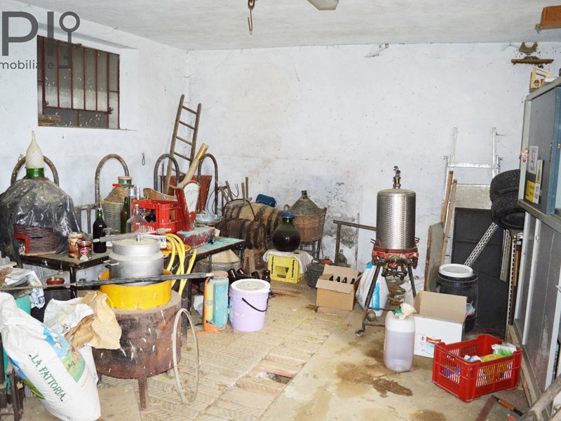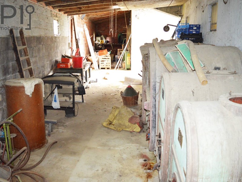 La parte abitativa è adiacente ad un locale caldaia al grezzo, con caldaia a gasolio (da sostituire), che rimanda alla zona di ex vinificazione; da qui si accede alla parte prima abitativa che ha anche ingresso separato e si compone di ingresso con scala centrale in marmo, cucina collegata ai locali di vinificazione, soggiorno e ulteriore vano.