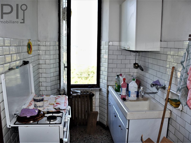 La casa abitatica su due piani si sviluppa per circa 200 mq con a piano terra 3 grandi cantine al piano primo la parte abitativa composta da cucinino con tinello, 3 camere e bagno. La zona giorno e una camera hanno l'affaccio su una grande terrazza che corre lungo tutto il lato della casaLe condizioni dall'appartamento sono tipiche anni 60 con pavimenti in graniglia, finestre in legno vetro semplice, termosifoni in ghisa, altezza circa 3 mt, impianti dell'epoca, persiane in legno. Il riscaldamento è con stufa e termocucina che scalda i termosifoni ed è situata nella cucinotta.