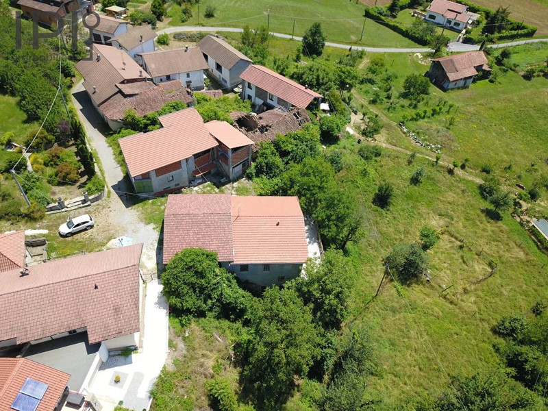 Grande terrazza pavimentata al di sotto della parte abitativa esposta a valle di circa 80 metri quadri. Sempre sul medesimo lato del corpo di fabbricati troviamo ancora un locale fienile ampio di circa 70-80 mq con sottostante ex stalla e porticato aperto.