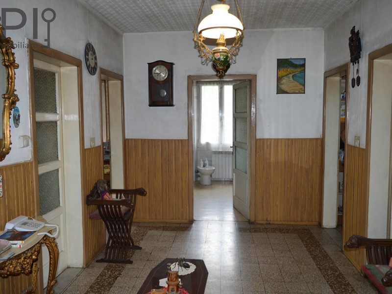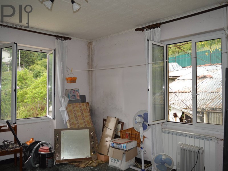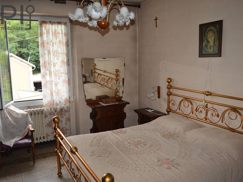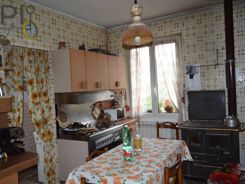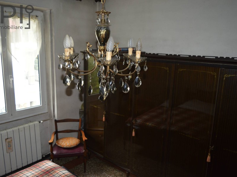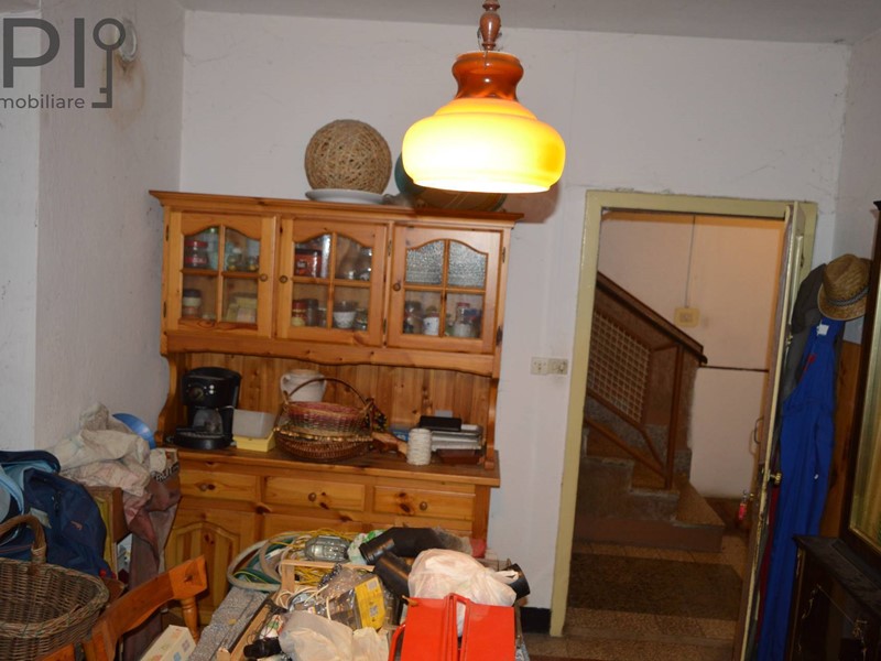 Qui troviamo un bagnetto, due vani e l'appartamento abitativo, composto da ingresso alla genovese con stufa a pellet, bagno con doccia con finiture anni 90, due camere da letto, sala con camino e cucina con stufa e cucinino.