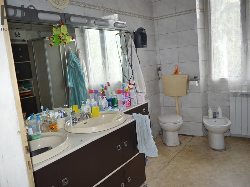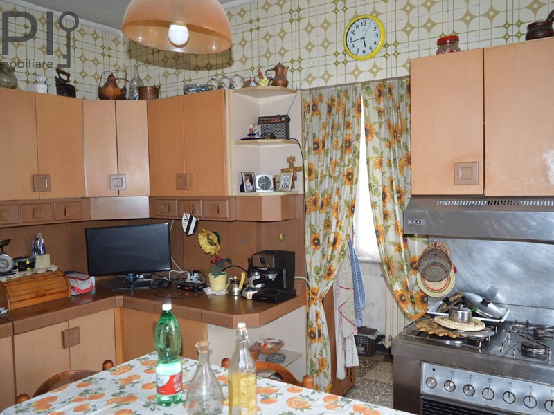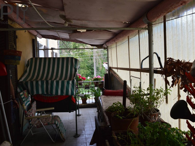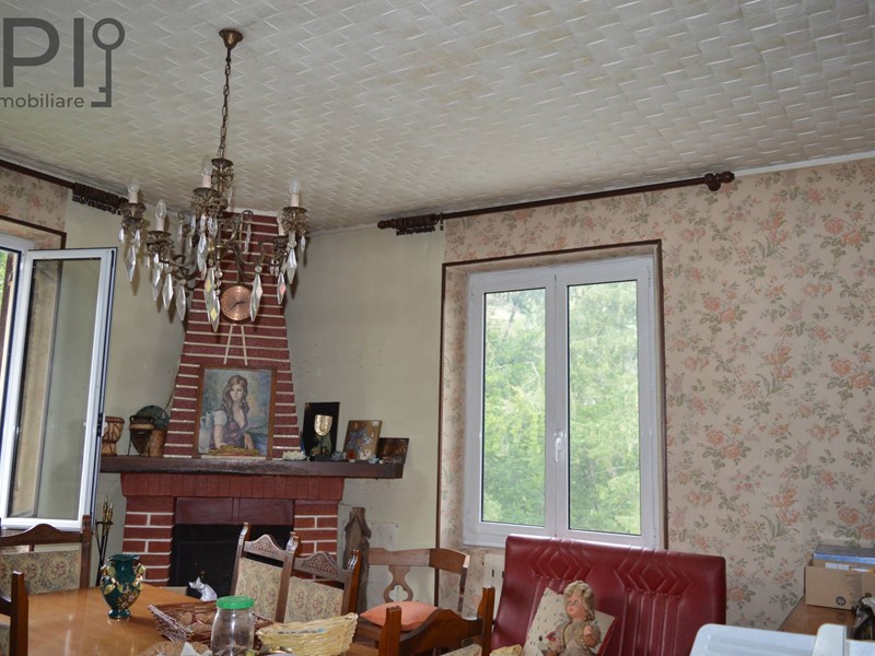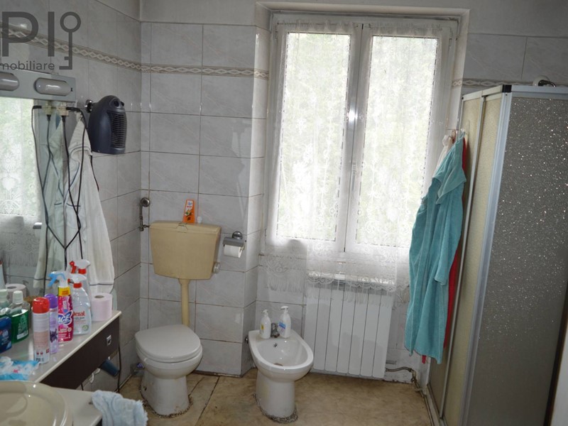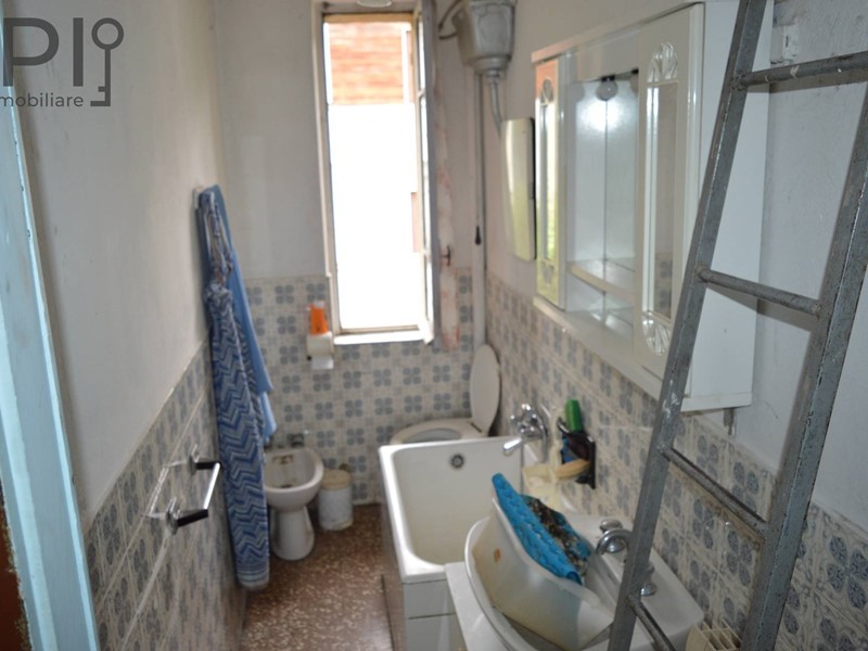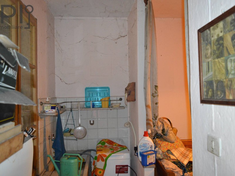 Qui troviamo un bagnetto, due vani e l'appartamento abitativo, composto da ingresso alla genovese con stufa a pellet, bagno con doccia con finiture anni 90, due camere da letto, sala con camino e cucina con stufa e cucinino.
