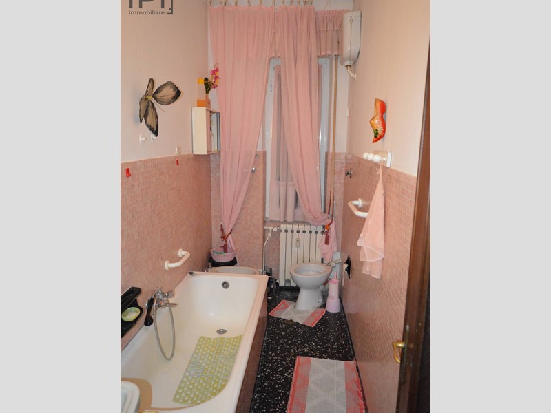 Appartamento di circa 90 mq al sesto ed ultimo piano. Terrazzino con bella vista su Cairo, ingresso sagomato, cucina abitabile, sala, 2 camere da letto, bagno e dispensa. Cantina. Pavimenti in palladiana scura, serramenti in alluminio doppio vetro, riscaldamento con teleriscaldamento a valvole, spese condominiali annue compreso riscaldamento euro 2000 circa. Bagno anni 80.