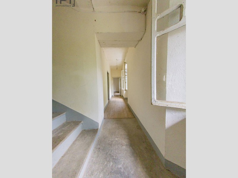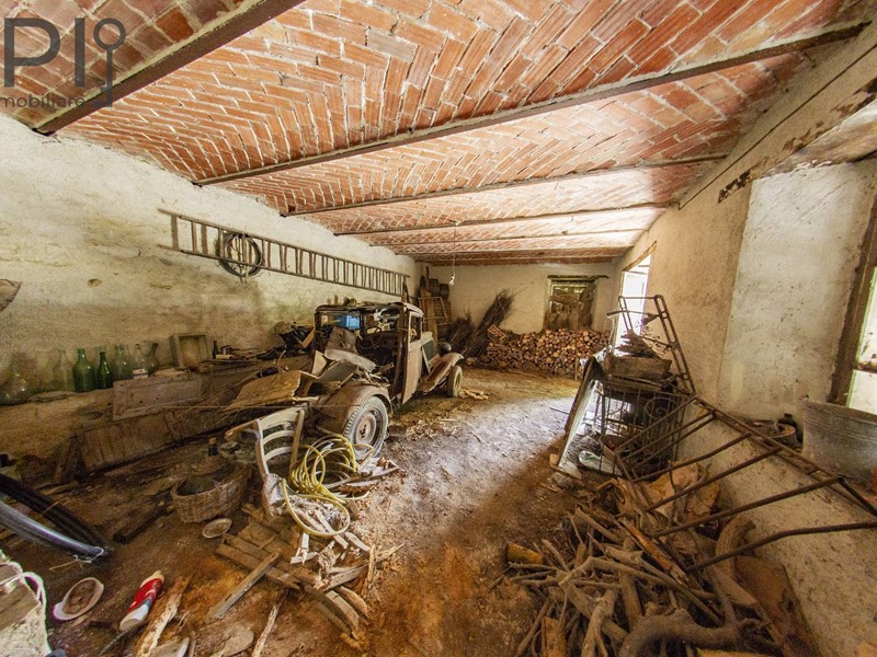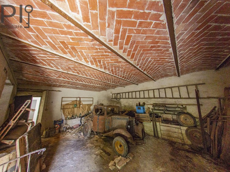 L'immobile si erge su 3 livelli con a piano terreno un cucinino, l'ex stalla, ora usata come garage, con bellissimi voltini in mattoni e la scala di accesso al piano primo, che risulta a quota del terreno sul retro della casa.