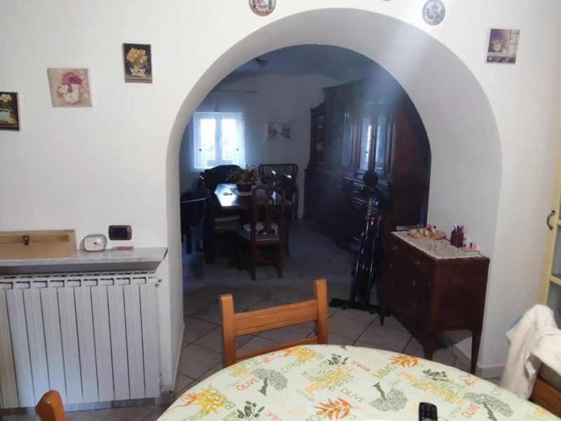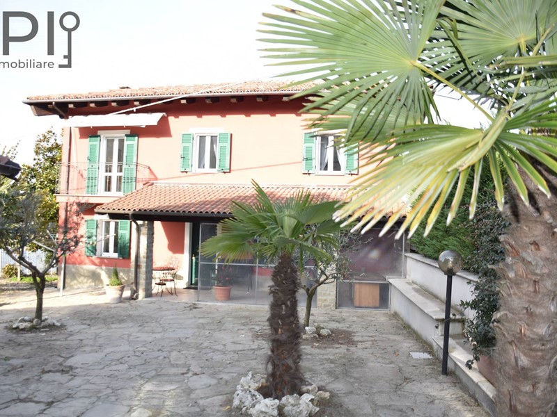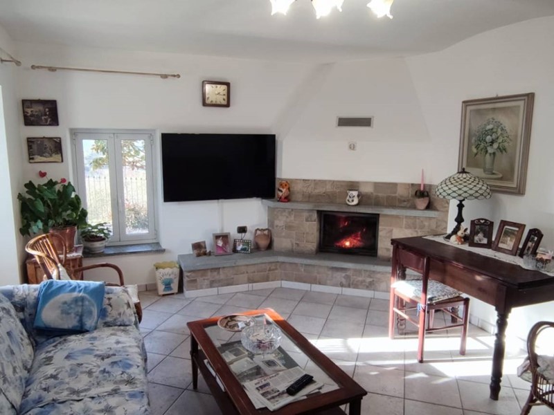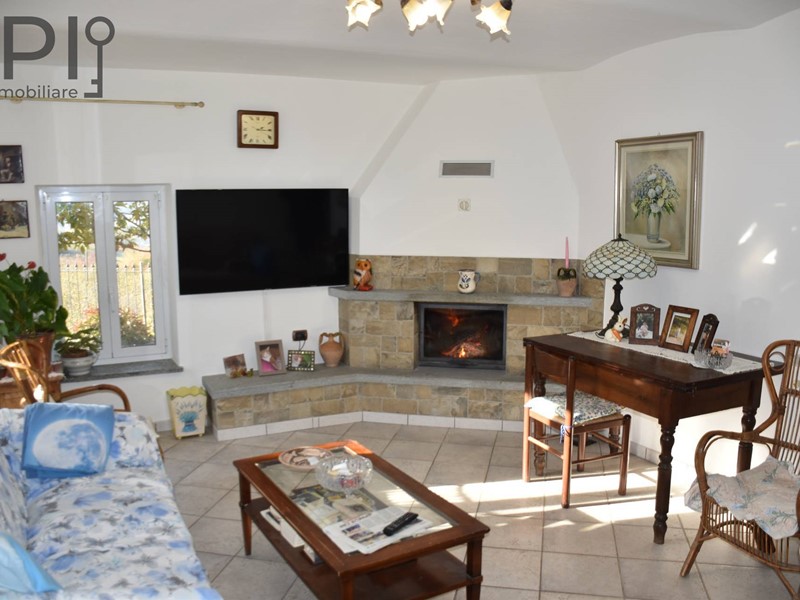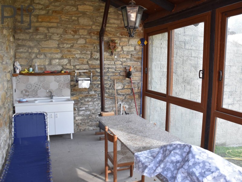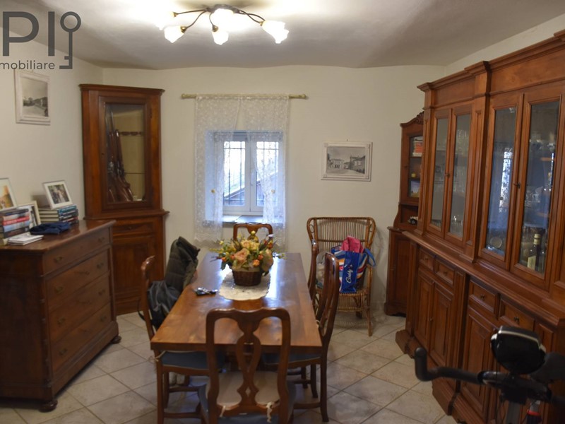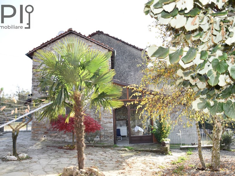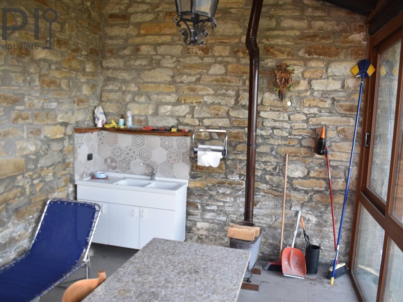 Accesso alla proprietà tramite cancello elettrificato che conduce al cortile e giardino, circondato da un muretto in pietra molto bello. Ingresso dell'abitazione su due livelli con a piano terreno salone con camino, cucina abitabile collegata tramite un arco alla sala da pranzo, da cui si passa in una zona di passaggio che porta alla dispensa+vano caldaia, con accesso diretto al giardino, al bagno del piano con finiture in marmo e doccia ella scala per lil primo piano.