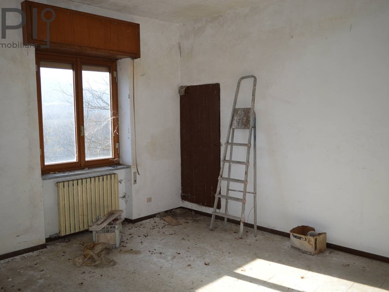 Gli spazi sarebbero da redistribuire per poter eventualmente creare due unità abitative. Attualmente al piano primo abbiamo una cucina, un altro vano in cui è stata allestita una seconda cucina, 2 camere di cui una con balcone e una passante. All'interno della prima stanza troviamo l'accesso per il piano superiore composto da 4 camere di cui una passante e un bagno.