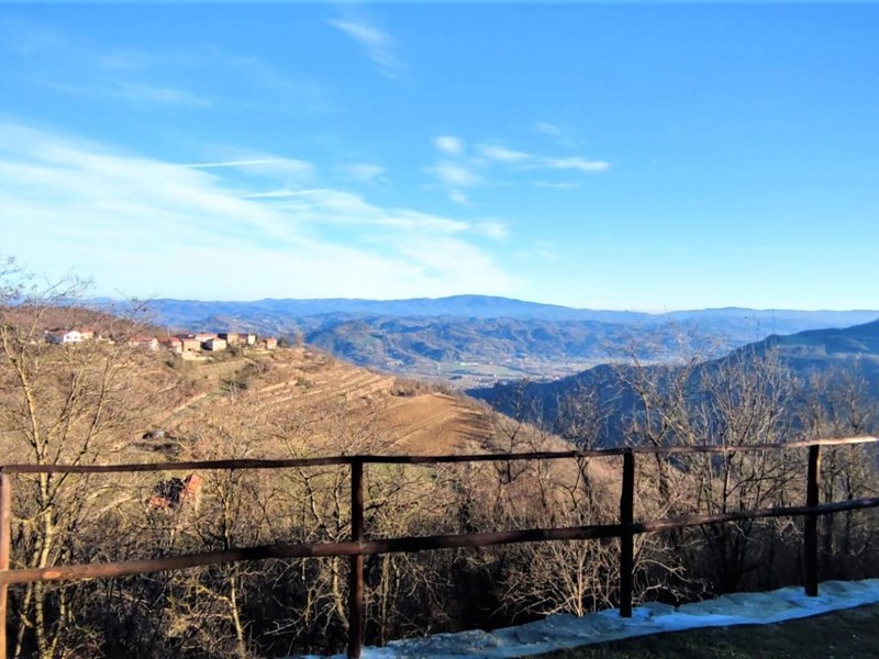 Rispetto alla casa, dal lato opposto del cortile abbiamo invece il rustico su 2 livelli che potrebbe venire una straordinaria dependance in pietra a vista, una vera terrazza panoramica con vista sconfinata sulla valle.
