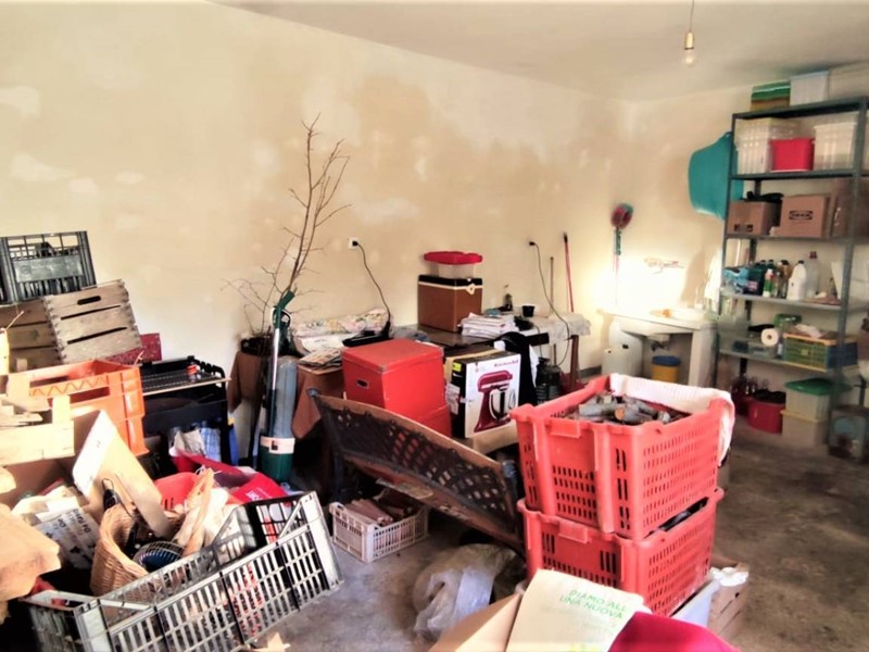 La parte abitativa si compone di 2 cantine al piano seminterrato, al piano terreno, con accesso dal cortile pavimentato ove è possibile parcheggiare diverse macchine troviamo una grande cucina-soggiorno e altri 2 vani a tavernetta/cantina e adiacente deposito. Al piano primo abbiamo invece 3 grandi camere la letto con bagno ed una camera passante a soggiorno/studio/libreria. Il tutto in condizioni ottime, subito abitabile e ben arredato. Finestre in legno vetro singolo, tapparelle, pavimenti in ceramica e riscaldamento con stufe a legna. Impianti anni'70 ma perfettamente funzionanti.