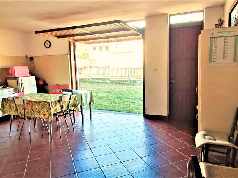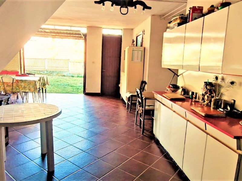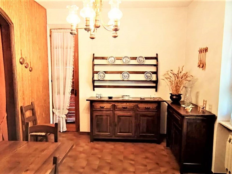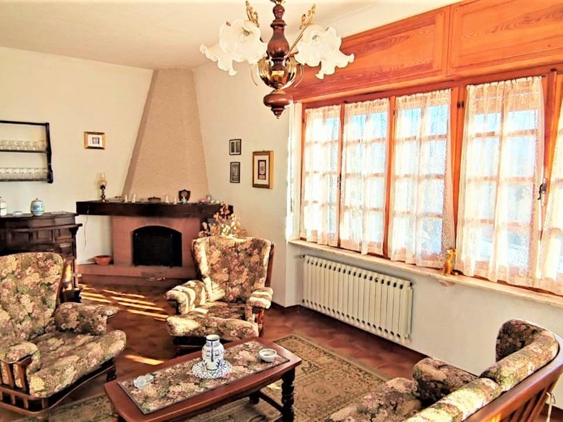 Con accesso sia dal piano terreno che da scala esterna si accede al primo piano che si compone di ampio ingresso, una sala con caminetto con ampie vetrate, un tinello con cucinotto, due camere, bagno.