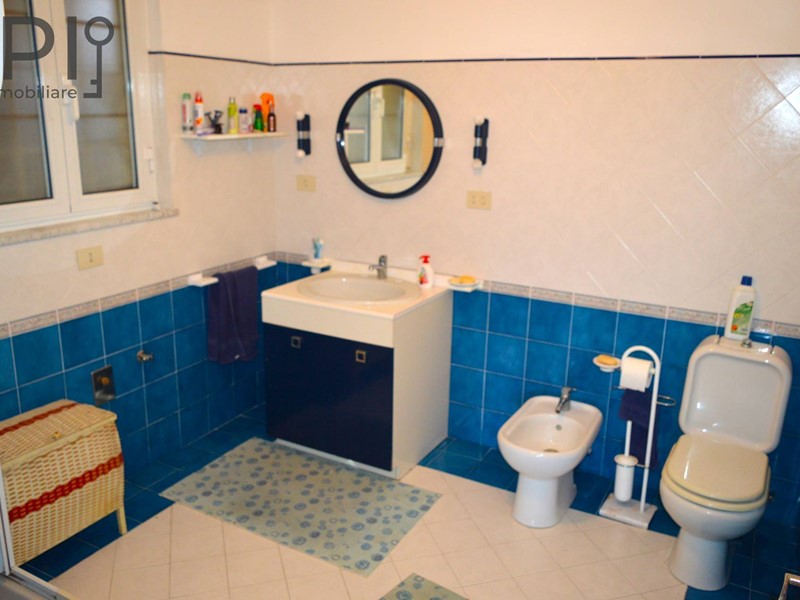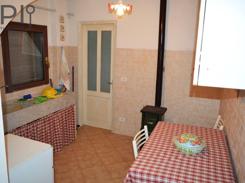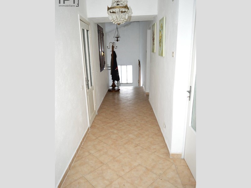 L'appartamento al piano superiore è raggiungibile sia da scala interna dal piano rialzato che esternamente dalla grande terrazza che copre gran parte dell'abitazione. Anche qui abbiamo un vano più datato da riordinare con balcone, una cucina con annesso salone, dotato di camino e bella terrazza con archi, due camere con balcone e bagno con doccia. Qui le finiture sono più recenti con pavimenti in gres e finestre in legno doppio vetro con inglesine molto piacevoli.
