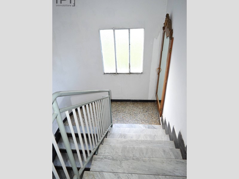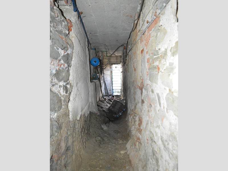 Al piano rialzato abbiamo il primo ingresso sull'appartamento con finiture più datate; ingresso su corridoio, bagnetto di servizio, un bagno più recente rifatto intorno agli anni 2000 con doccia, una bella sala con camino e balcone, la cucina, e una ulteriore camera con finiture anni 60 e da riordinare. In questo ambiente pavimenti sono in graniglia e gli infissi in alluminio doppio vetro primo tipo. Ancora al piano accesso alle cantine tramite scala interna, che scendendo porta al piano strada sull'altro lato dell'immobile. Qui a piano seminterrato abbiamo due cantine separate con accesso anche dall'esterno e un altro locale a fianco un tempo utilizzato come locale commerciale con una particolarità: un 'crotin' scavato nel tufo con tanto di sorgente collegata a pompa per portare l'acqua al rustico di fronte.