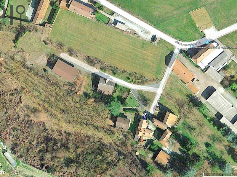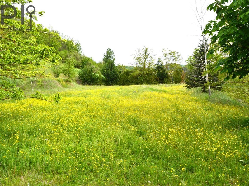 Il terreno pertinenziale, in unico corpo attorno ai fabbricati, è di 12.600 mq quasi tutto pianeggiante suddiviso in coltivo, prativo e noceto.