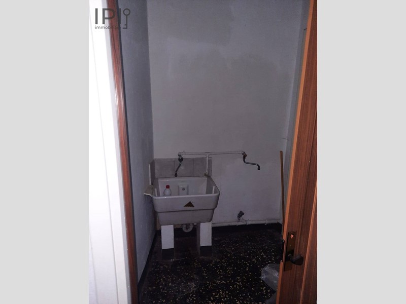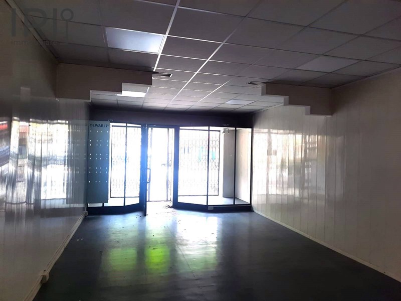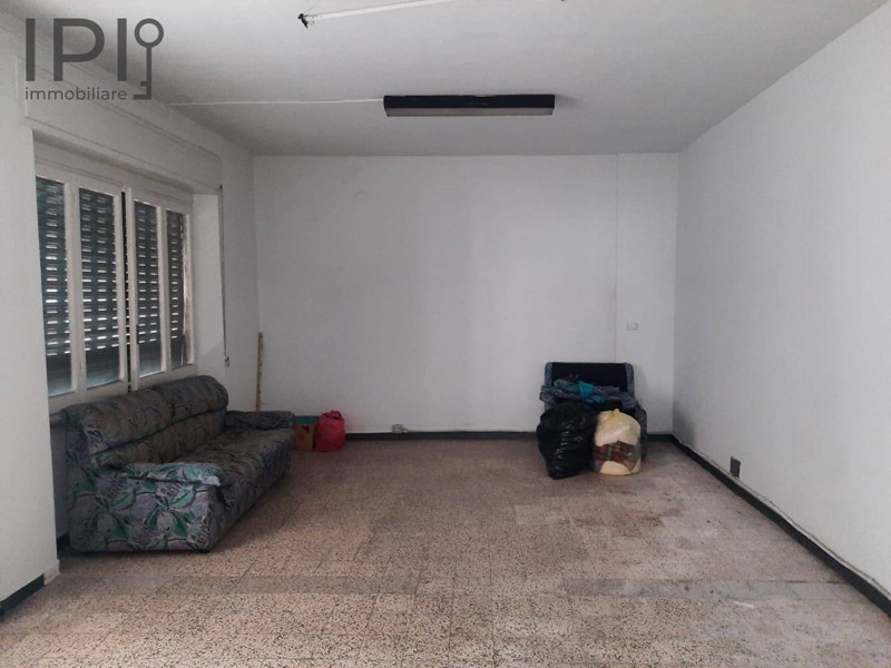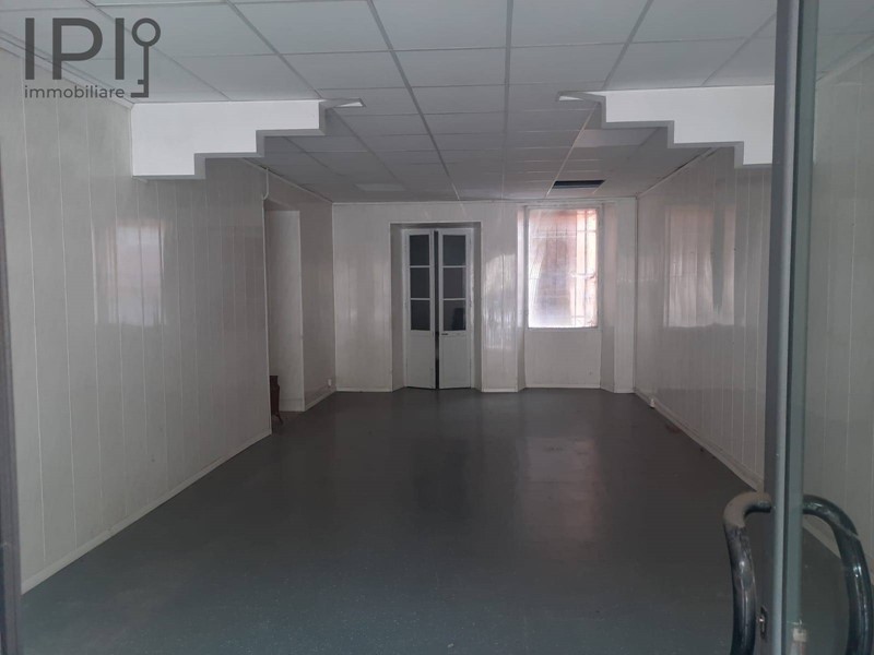 Si accede direttamente dal marciapiede a piano strada tramite vetrina con cancelletto. Il primo ambiente è stato in parte ristrutturato nell'impianto elettrico e presenta un grande vano unico con pavimento in linoleum e controsoffittatura a pannelli; sul retro locale di servizio e ulteriore grande ambiente ad uso magazzino o sfruttabile come spazio di vendita, piu' datato, con pavimenti in graniglia.