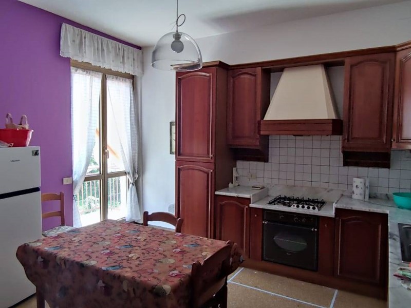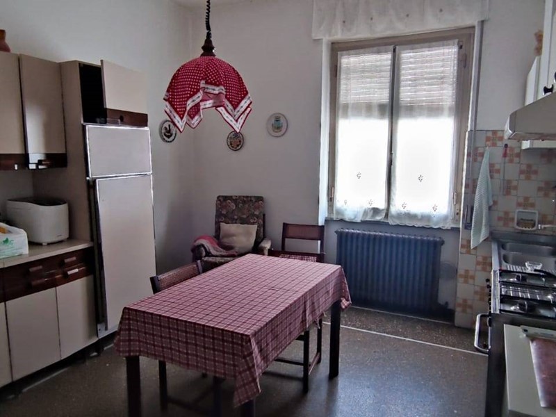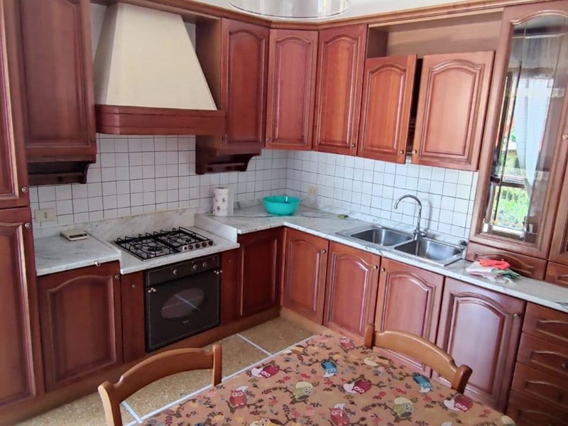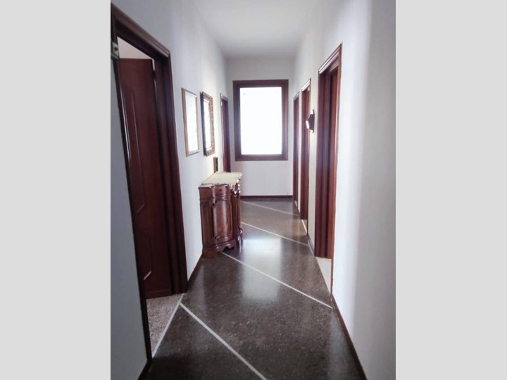 Al piano terra ingresso laterale con accesso al primo appartamento su corridoio che porta a salone doppio, cucina abitabile, dispensa, bagno e due camere da letto. Pavimenti in marmo e graniglia, infissi alluminio doppio vetro e riscaldamento autonomo a metano. Sempre dall'appartamento accesso al piano seminterrato dove troviamo legnania e cantina, uscita sul giardino e al vano scala che porta all'appartamento al piano superiore con ingresso indipendente.