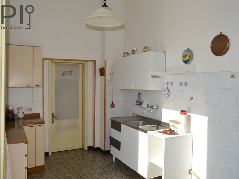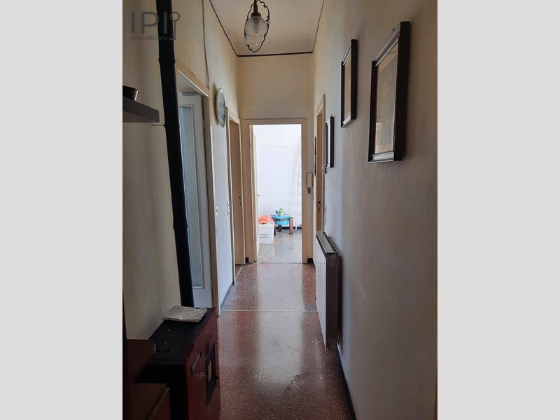 Ingresso su un vano che attualmente viene utilizzato come lavanderia, cucina spaziosa con accesso al terrazzo, corridoio per la zona notte, composta da un bagno con finiture anni 70 con vasca e altri tre vani, di cui uno con balcone.
