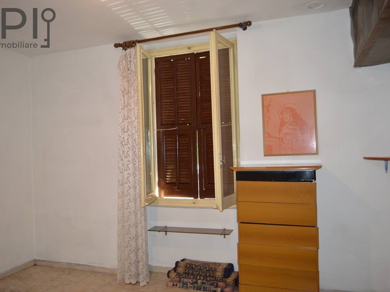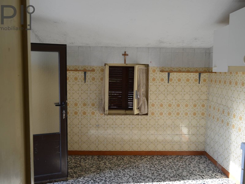 Accesso al primo appartamento a piano terreno composto da dispensa, cucina con camino e stufa, secondo ingresso dal retro con camera matrimoniale, bagno e antibagno e ulteriore camera da letto.