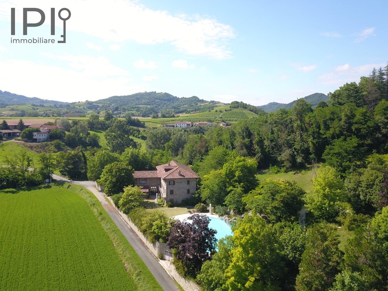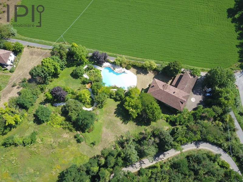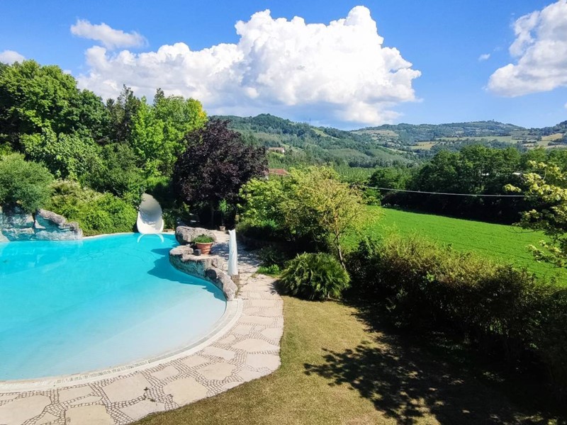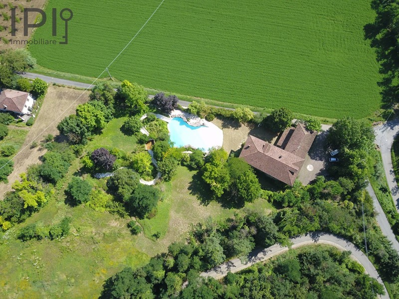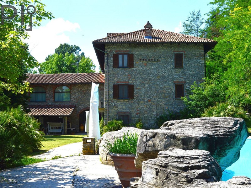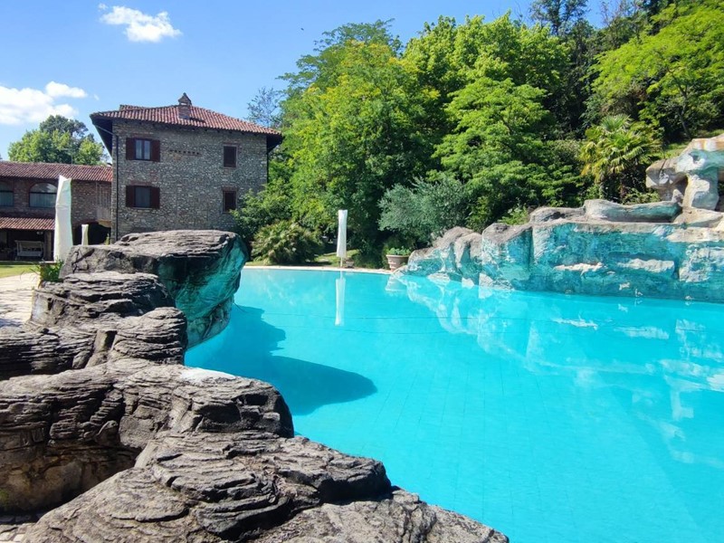 Sulle alture di Bistagno, allingresso elle Langhe del Monferrato, in posizione estremamente riservata ma comoda ai servizi, vendesi pregevole proprietà composta da grande villa in pietra, piscina, terreno di oltre 1 ettaro con campo da tennis e calcetto in sintetico.