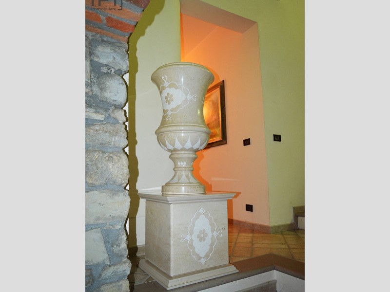 Finiture di altissima qualità, con infissi legno vetro doppio con zanzariere, bagni in marmo rosa con rubinetteria pregiata, scala in marmo e corrimano in ferro battuto, particolari in pietra, pavimenti in cotto toscano, placche frutti dellimpianto elettrico in radica, lampadari di design e molto altro da scoprire, ma sempre delineato da un immenso gusto.