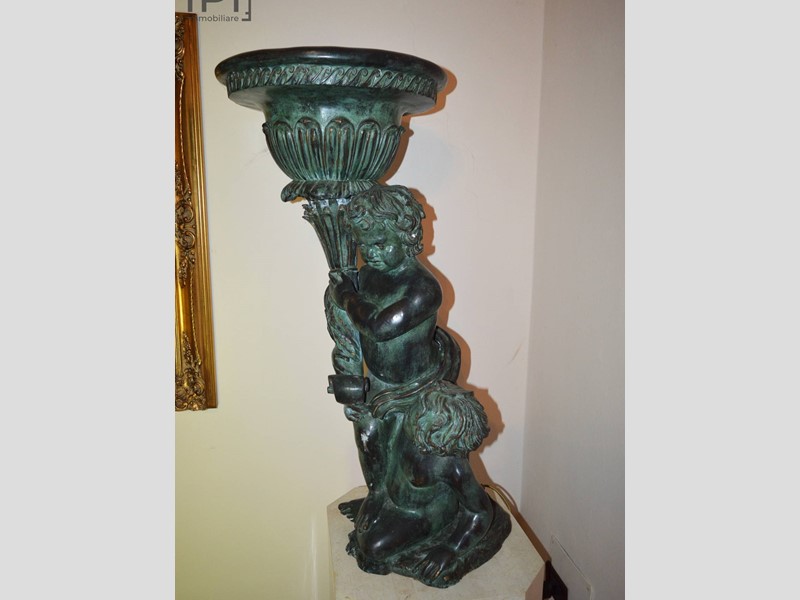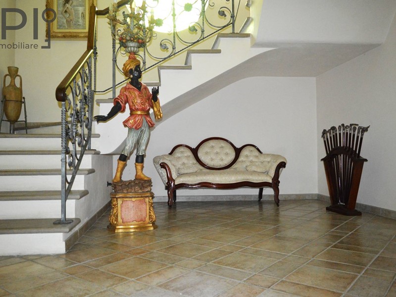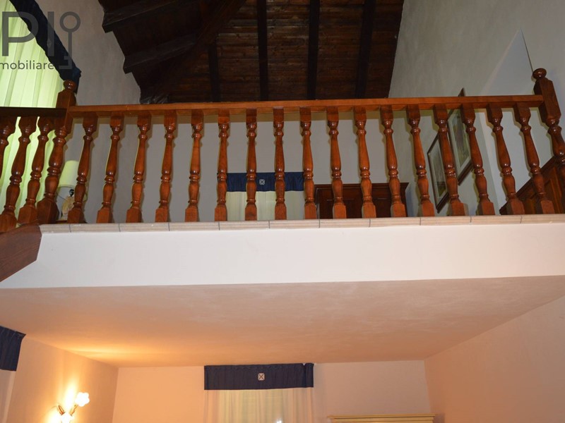 Al centro splendida scala in marmo e ferro battuto, che si divide su due lati e conduce al primo piano, dove comincia la zona notte composta da bagno con doccia, camera enorme con parte soppalcata accessibile da scala in legno, altre due camere da letto.