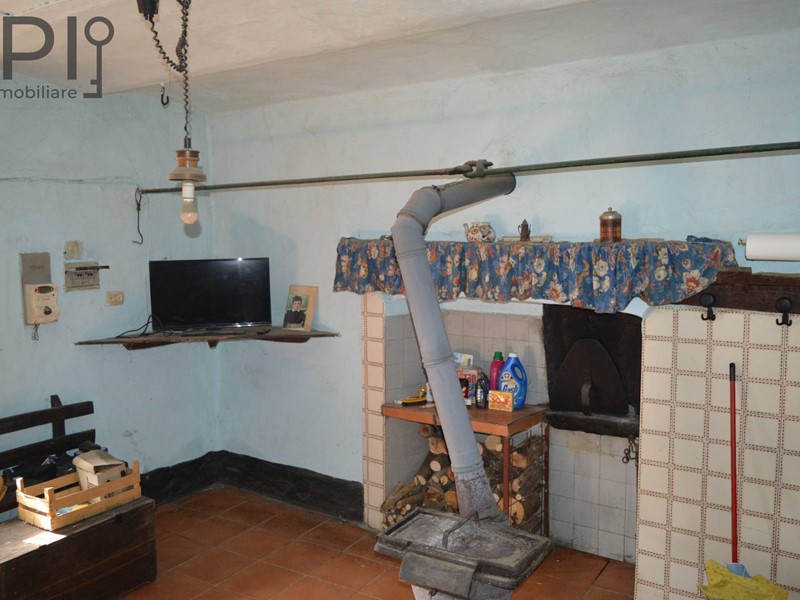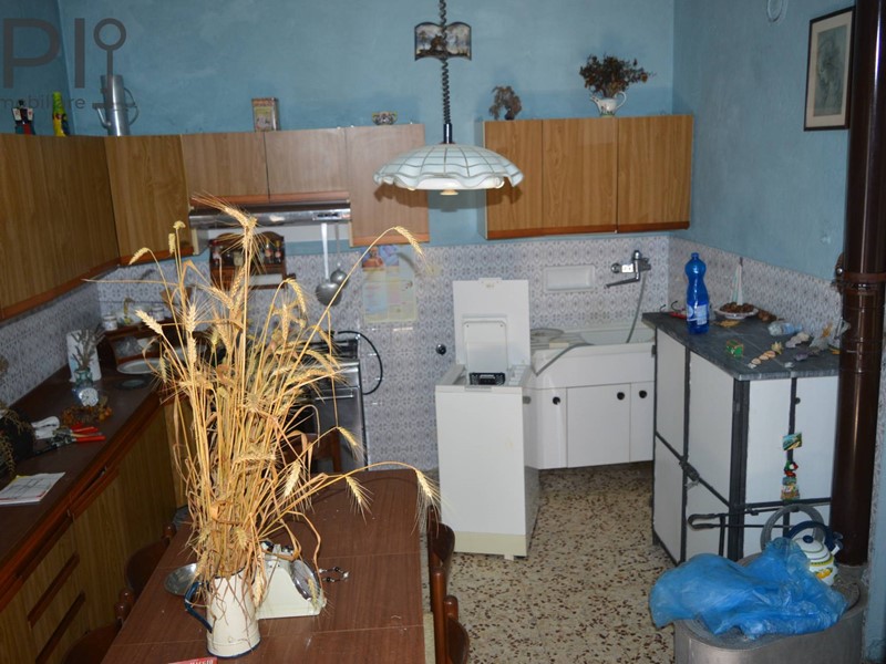 L'abitazione con ingresso a piano terra su cucina con forno a legna e voltini in mattoni, scala centrale e sull'altro lato vano al grezzo;