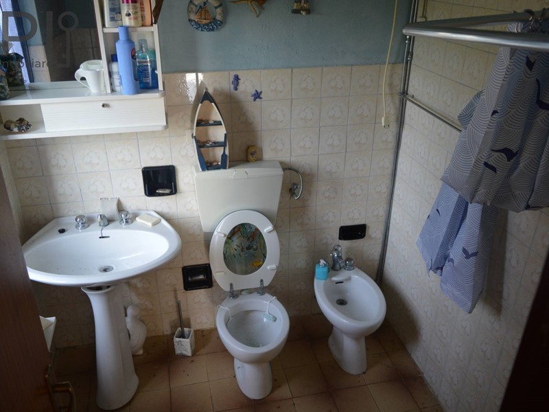 Al piano superiore, tramite scala in marmo, l'appartamento abitativo con finiture risalenti agli anni 80 (epoca di costruzione) con corridoio, cucinino con tinello, soggiorno con ballatoio, 5 vani , una grossa dispensa finestrata, bagno con vasca e doccia anni 90, piastrelle in ceramica, infissi doppio vetro alluminio primo tipo, impianto di riscaldamento ma senza caldaia, mentre luce ed acqua sono comunali, fossa settica.