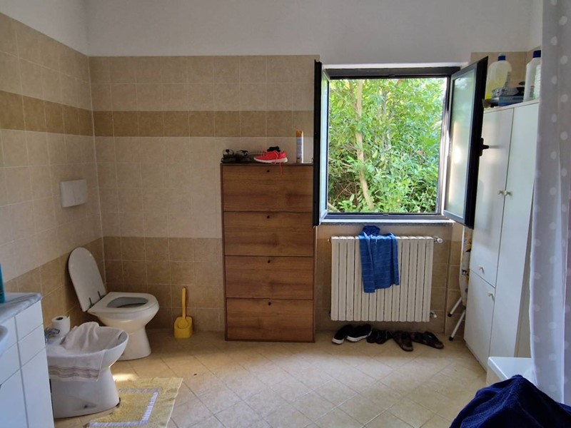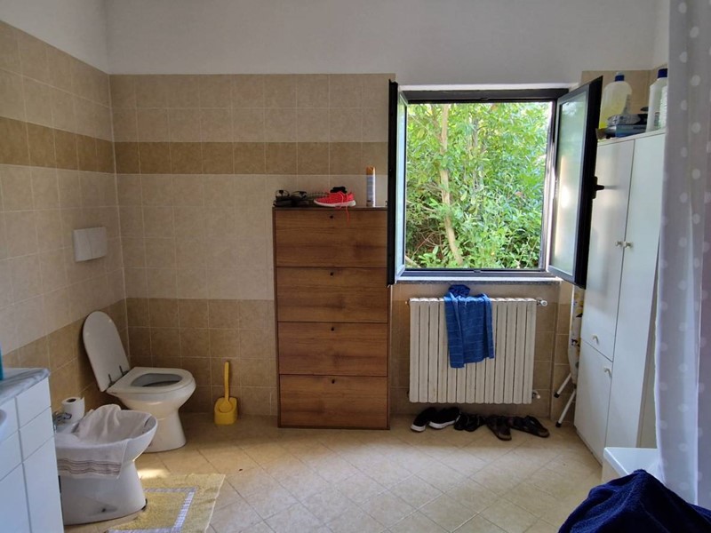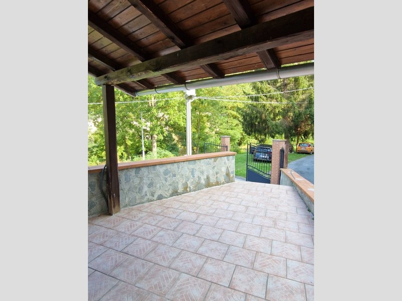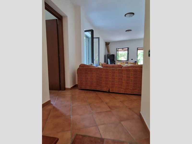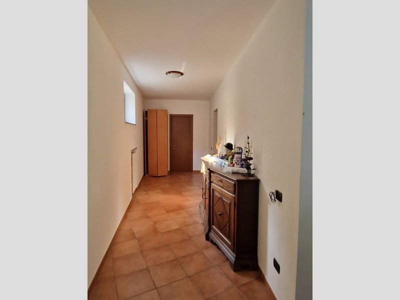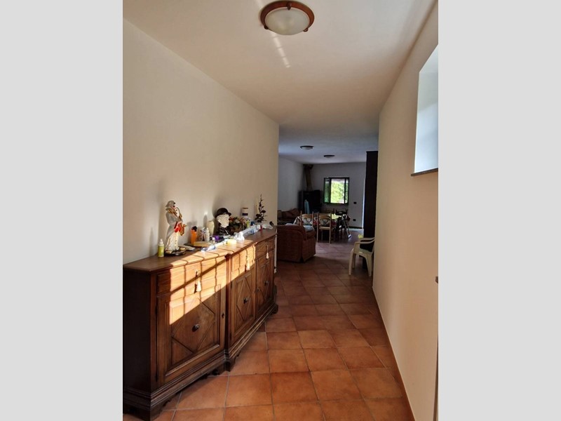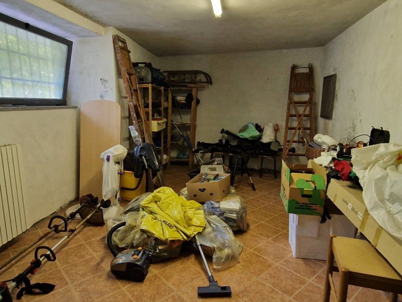 La medesima scala prosegue al piano seminterrato costituito da garage, taverna, cantina e locale caldaia. Lo spazio esterno è costituito da una parte pavimentata e recintata, una parte a prato annesso al fabbricato ed una terza parte, pianeggiate, oltre la strada. Le condizioni complessive sono perfette. Tetto nuovo coibentato, impianti nuovi, bagni nuovi, infissi in alluminio doppio vetro, finiture perfette.