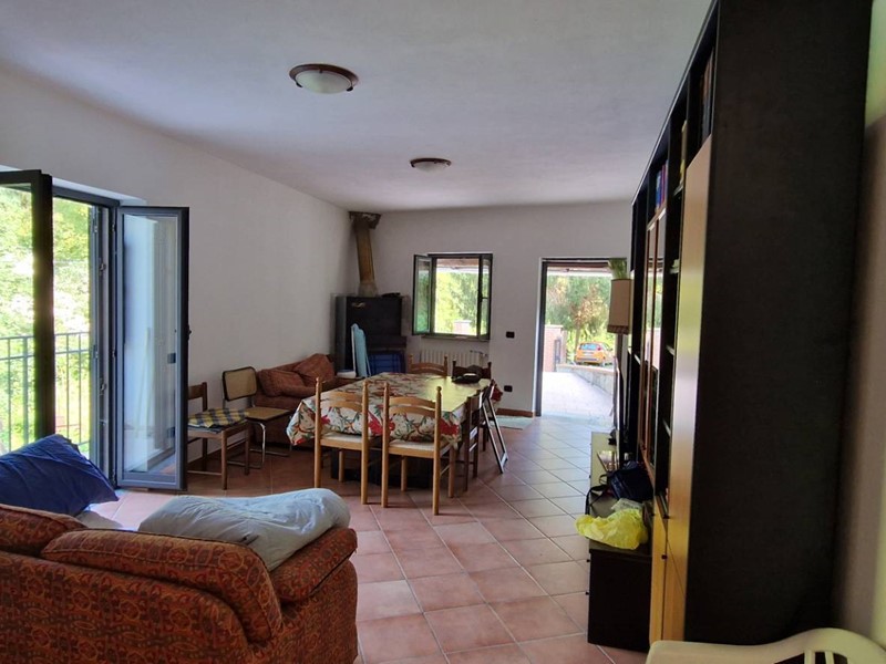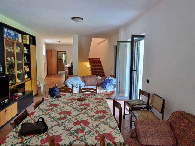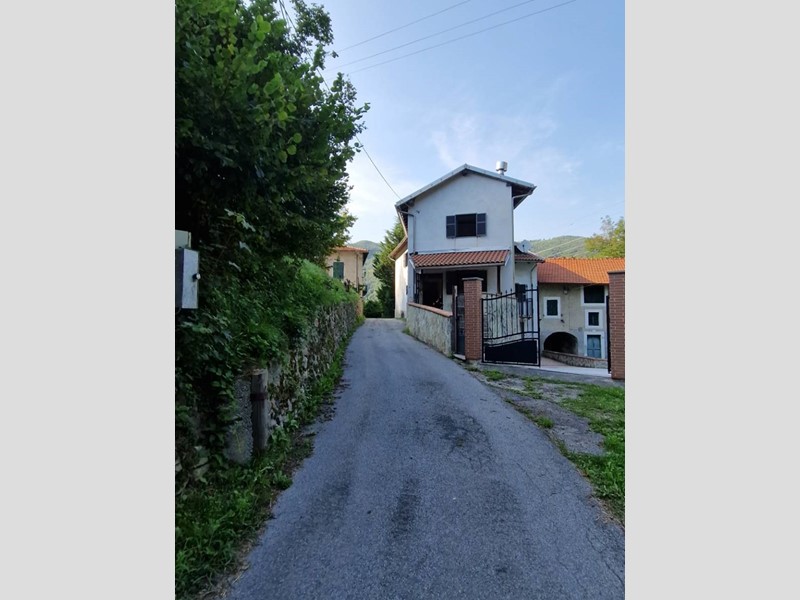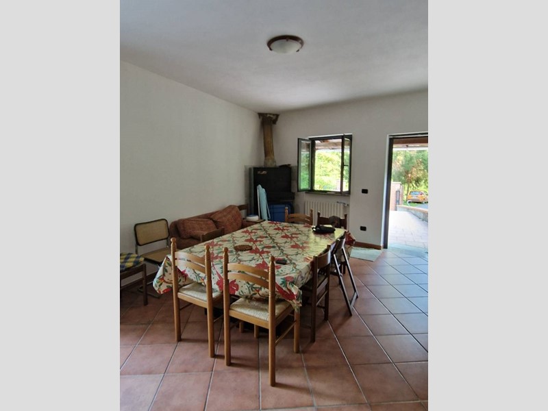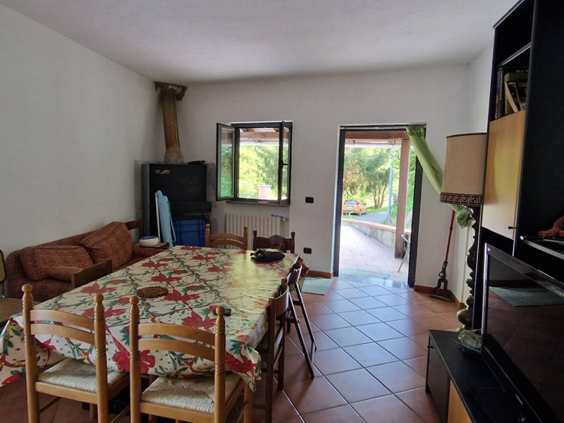 In una piccola borgata immersa nel verde, non distante dal centro e comoda alla strada principale, villetta semindipendente libera da tre lati, con ampio terreno circostante.