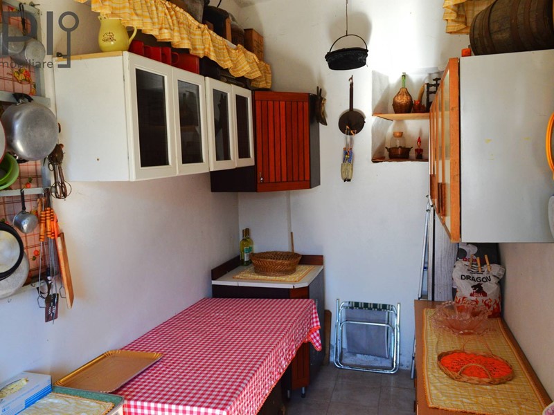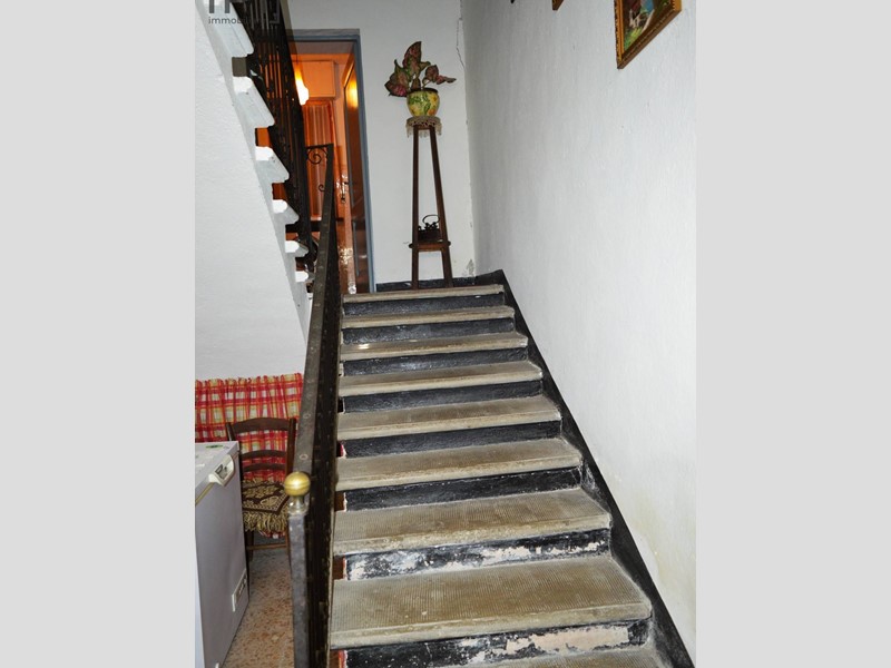 La parte sinistra dell'edificio entrando dal cancello si suddivide in diverse parti la prima ha accesso da scala indipendente a lato dell'ingresso secondario della cucina, una porta immette nel vano scale che porta al piano primo a due vani abitativi il primo come cucina ed il secondo come camera. Si sale ancora di un piano ed al piano superiore troviamo ancora due vani. Questa parte dell'edificio presenta evidenti lesioni, il tutto però è stato già stato bonificato con una qualificazione su tutto il perimetro del cortile, tramite palificazione sotterranea, che ha messo in sicurezza la totalità dell'edificio. Di questa di questi lavori esiste documentazione e certificazione con perizia ingegneristica che assicura la stabilità dell'edificio. Le finiture sono molto datate specialmente per quelle al secondo piano.