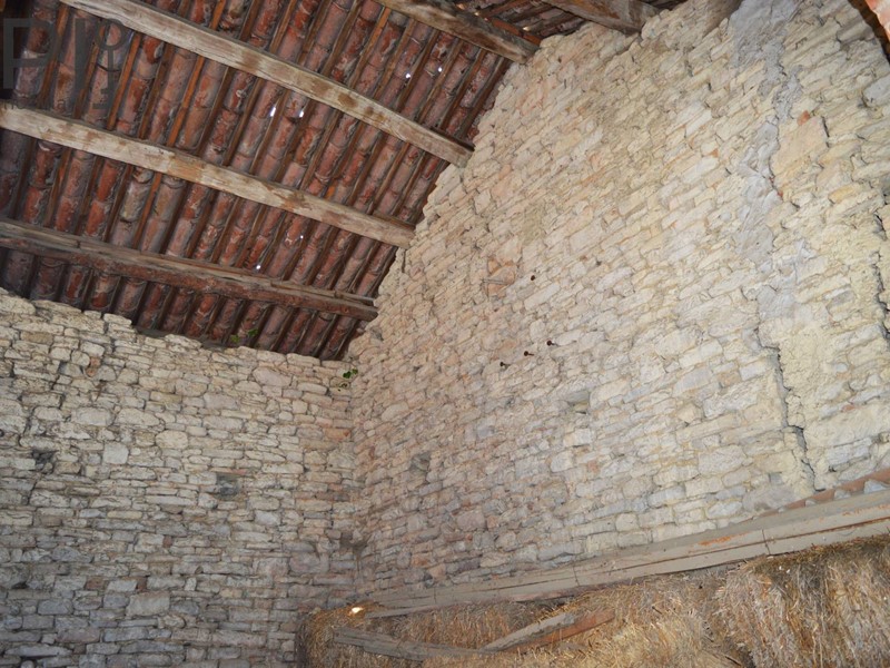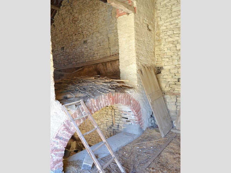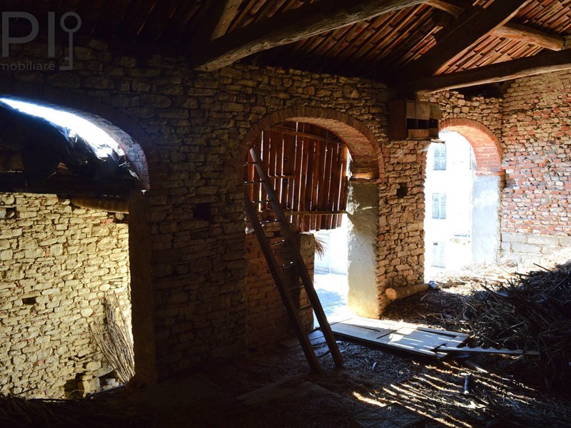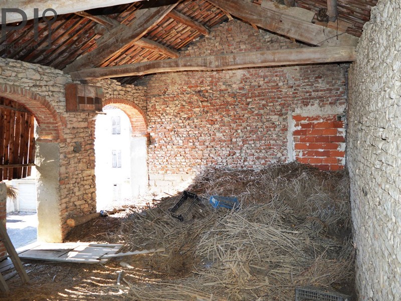 Sulla parte destra quello che era dedicato a stalle e fienili con a piano terra la vecchia stalla, un magazzino e porticati aperti frontalmente. A piano primo tutta la parte a fienili. Con arcate frontali.