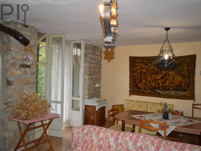 La prima proprietà si compone di cantina, stalla e accesso al vano scala a piano terreno, mantre salendo abbiamo la parte abitativa vera e propria composta da cucina con cucinino e terrazzo, salone con camino, due camere e bagnetto. Qui le finiture risalgono agli anni 70 con pavimenti in tavolato e piastrelle, infissi in legno e vetro singolo, riscaldamento tramite stufa.