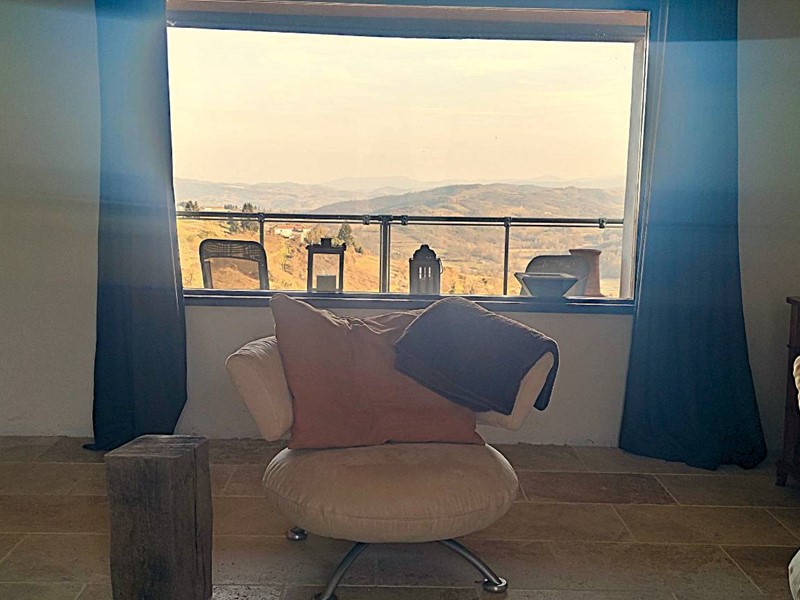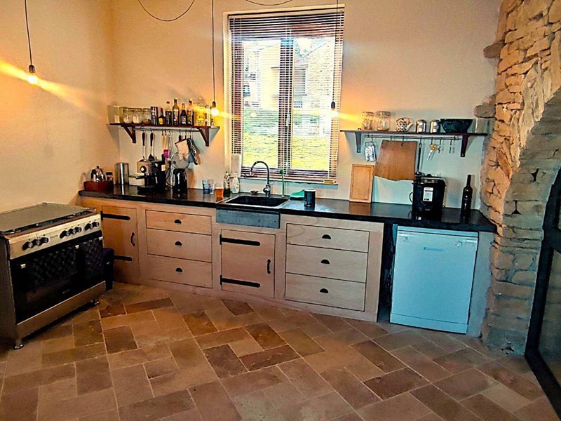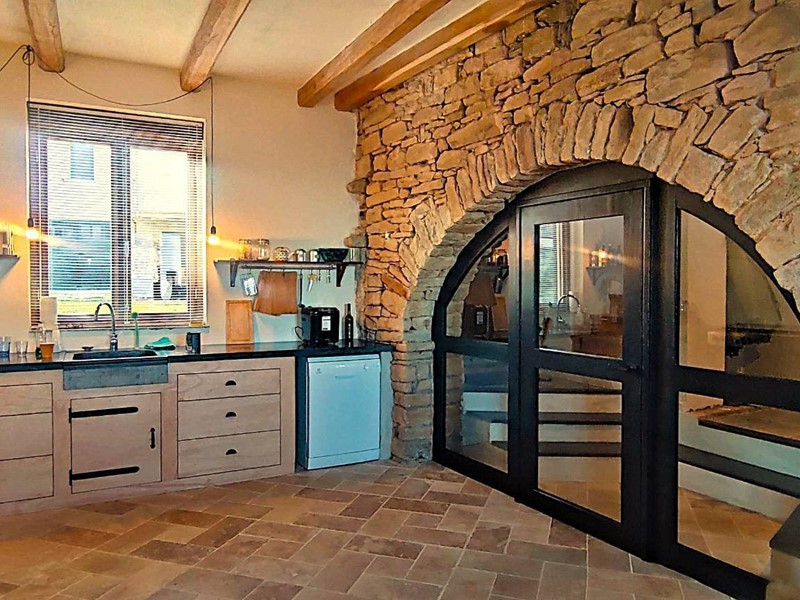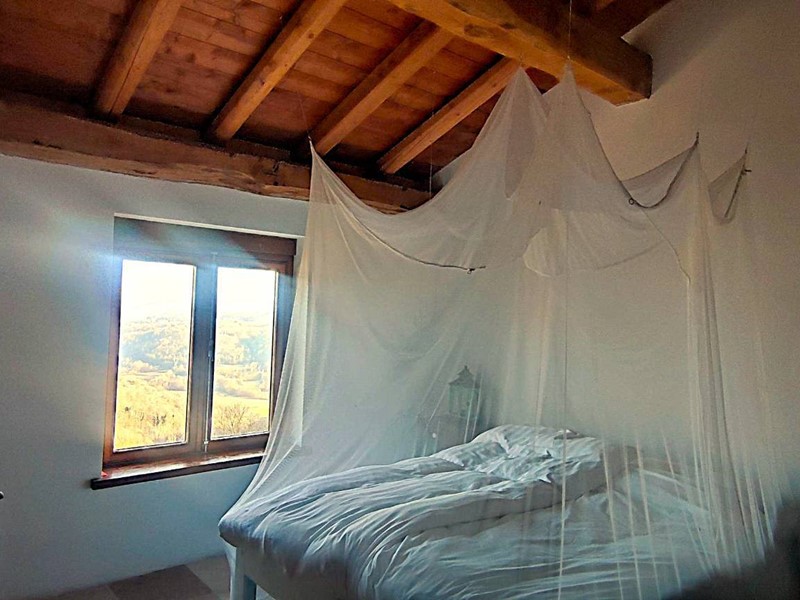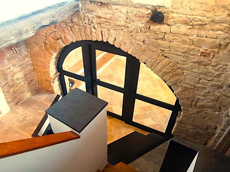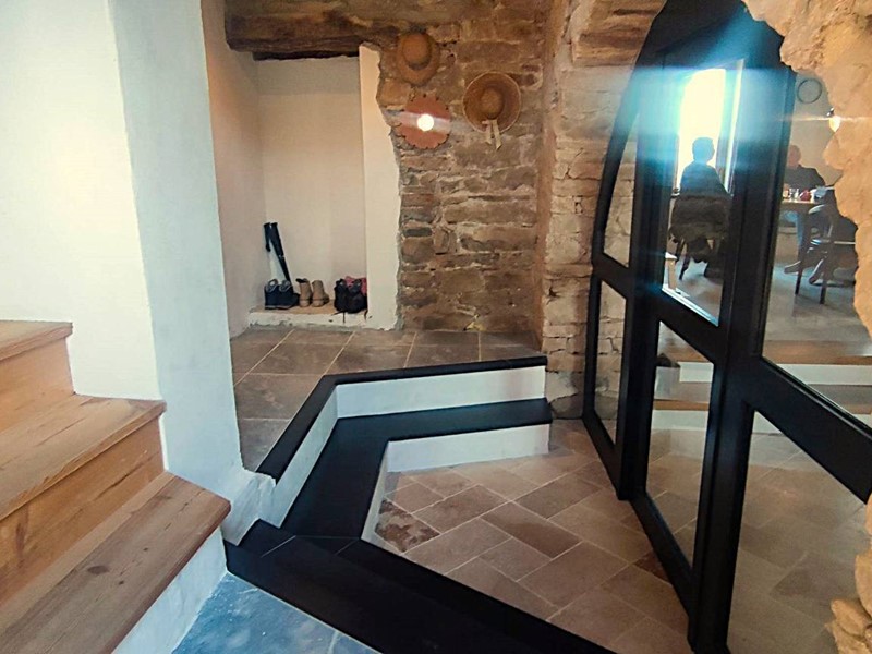 Tramite accesso sulla corte entriamo al piano terreno della parte ristrutturata. Venniamo accolti subito da un'atmosfera calda ed accogliente caratterizzata dalle finiture in pietra di langa e legni antichi. L'ngresso è su un disimpegno che rimanda a piccolo locale wc ed alla zona giorno costituita da cucina abitabile ed un primo soggiorno con tavolo per pranzare con vista sulle Langhe che guardano a meridione. Ancora un' ulteriore grande sala con vista, un locale caldaia, un locale lavanderia ed una terrazza panoramica completano il piano terreno.
