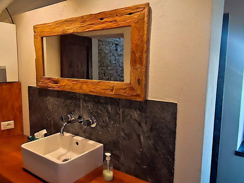 Al piano superiore della parte ristrutturata troviamo invece un bagno con doccia, 4 camere di cui una con bagno priva to ed uno sgombero.