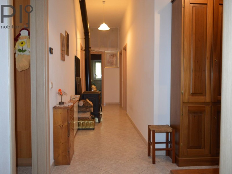 La casa, ristrutturata nel 2010 si compone di ingresso da portoncino blidato su zona di passaggio, una grande zona giorno sala/cucina con porta finestra per uscire in giardino e stufa a legna, quattro camere da letto e due bagni moderni con doccia. Finiture ricercare con pavimento in gres porcellanato, riscaldamento a pavimento a metano, sanitari sospesi, infissi doppio vetro alluminio. All'esterno, lato fiume una grande legnaia e una cantina seminterrata, lateralmente garage doppio soppalcato con bagnetto, cantina e piacevole taverna attrezzata. Tutto intorno circa 800 mq di giardino.